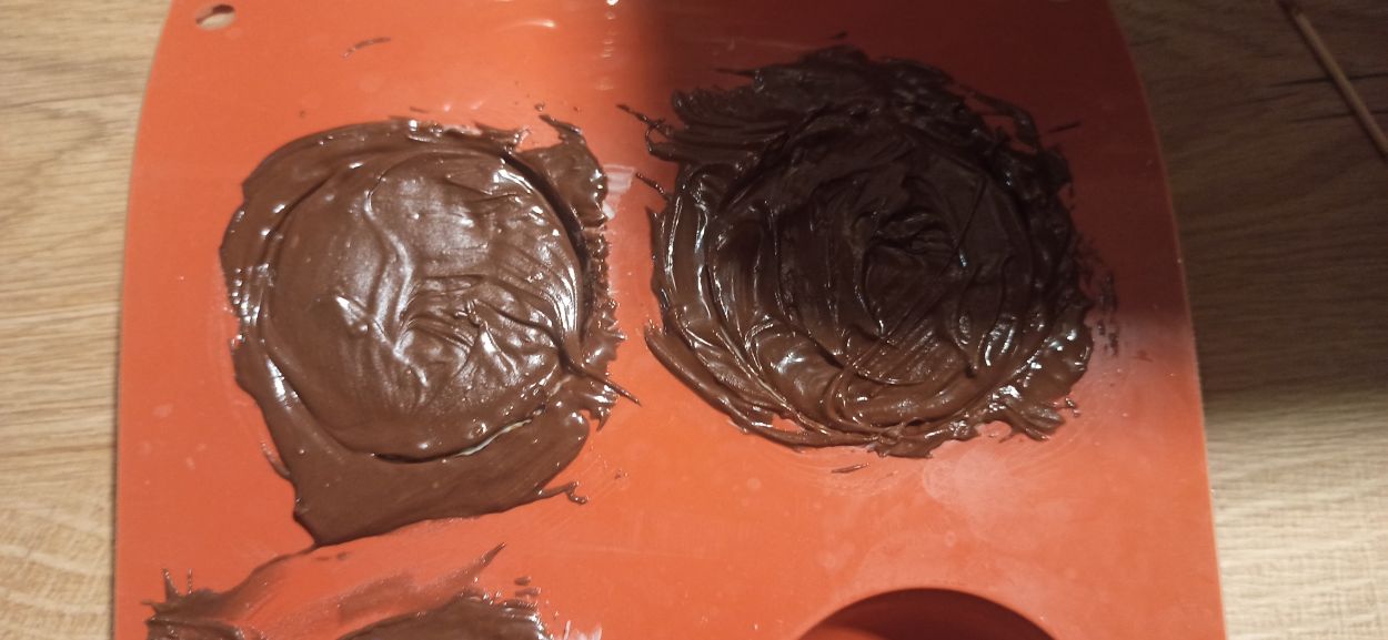 Con l’aiuto di un pennellino, rivestite gli stampini in silicone, e mettete a riposare per dieci minuti in frigorifero. Per ottenere un guscio più spesso, ripetete due volte questa operazione. Sciogliete il cioccolata a latte, aggiungete la crema di nocciole ed il liquore. Amalgamate il tutto, fino ad ottenere un composto omogeneo. Bagnate la superfice degli amaretti, e posizionateli all’interno dello stampino.