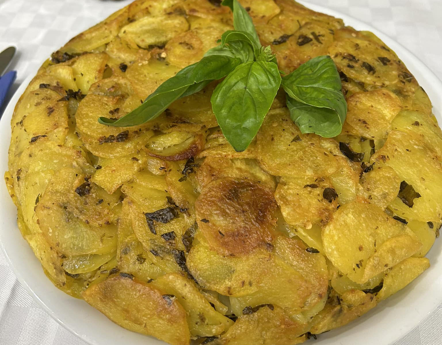 La frittata di patate alla fiumefreddese è un piatto che, a dispetto del nome, non contiene uova tra gli ingredienti. L’unico collante è l’amido rilasciato dalle patate e dalla farina in cottura. Il suo nome deriva dal paesino in cui è nata questa ricetta. Si chiama Fiumefreddo Bruzio e si trova in Calabria, a pochi passi da Cosenza. Oggi è diventato una meta turistica grazie alla sua meravigliosa vista sulla costa, al suo centro storico considerato tra i più belli d’Italia, al Monte Cocuzzo che lo domina dall’alto. Ovviamente la portata viene preparata con gli ingredienti del posto, ma potete cucinarla anche voi usando patate a pasta gialla.