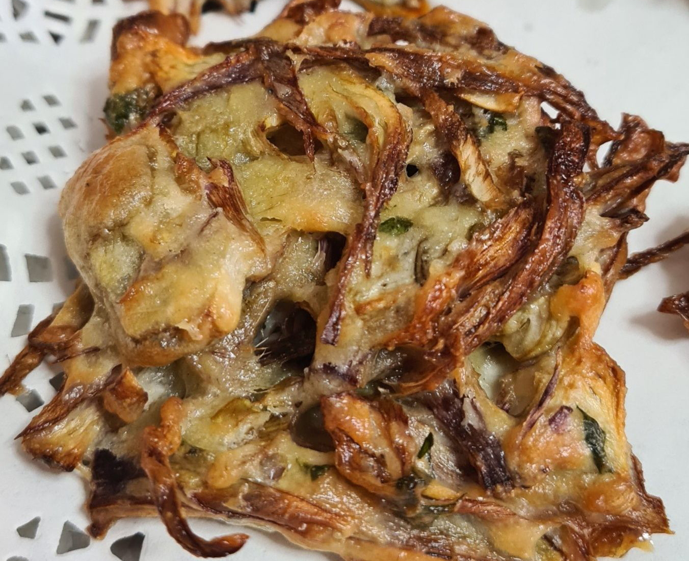 Quindi bisogna Unire i carciofi alla pastella, Versare i carciofi nella terrina con l’uovo e mescolare fino a quando assorbiranno tutto il liquido e Formare le frittelle creando dei piccoli mucchietti e disponendoli su un foglio di carta da forno, schiacciandoli leggermente con le mani. Ora possiamo passare alla Cottura in friggitrice ad aria: Spruzzare un po’ di olio sopra le frittelle. Cuocere in friggitrice ad aria a 180°C per 10 minuti , poi alzare la temperatura a 190°C per altri 5 minuti . Girarle a metà cottura se necessario per una doratura uniforme. Le frittelle saranno croccanti e saporite, perfette da gustare calde! Buon appetito!