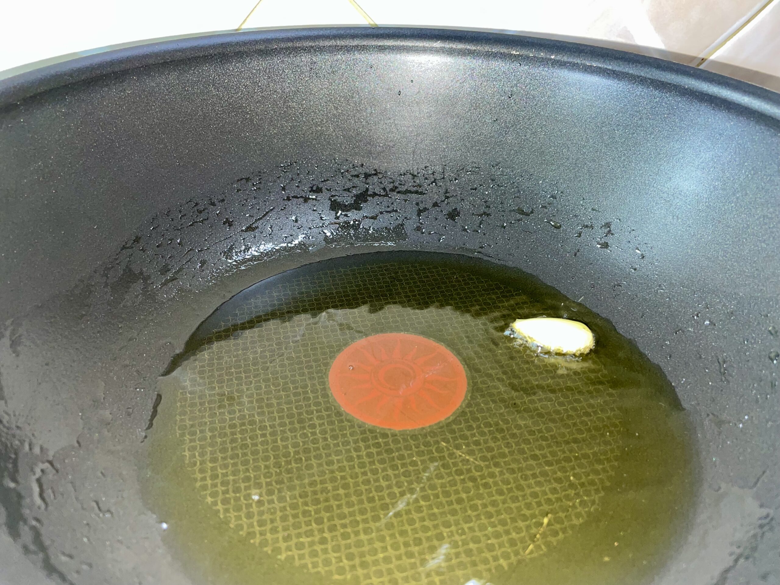 In una capiente padella mettete un paio di giri abbondanti di olio evo, fate imbiondire lo spicchio d’aglio ed eliminatelo.