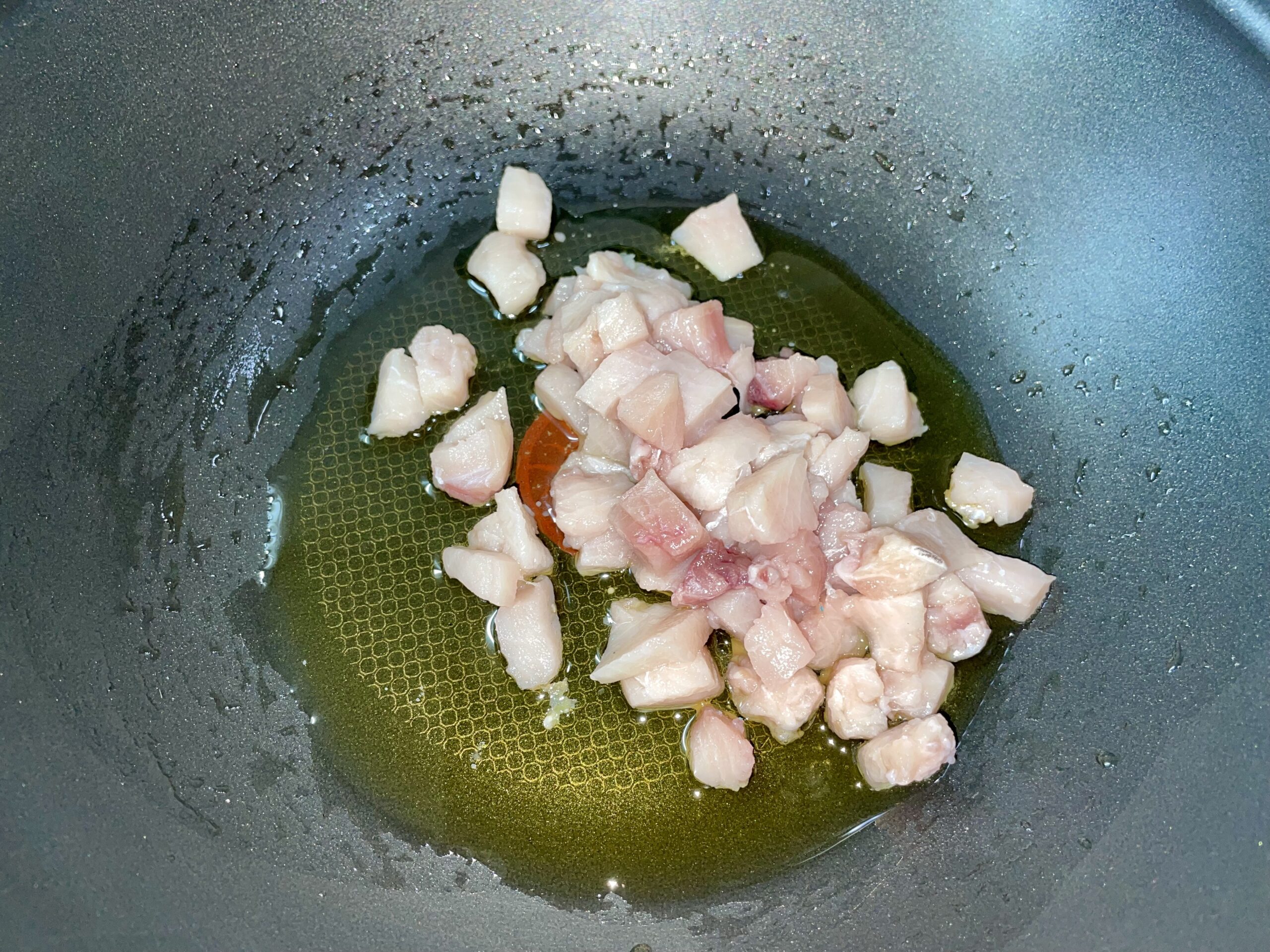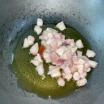 Aggiungete i pezzetti di pesce spada, fateli rosolare a fiamma vivace e sfumate con il vino bianco, Spegnete la fiamma e metteteli da parte in una ciotolina.