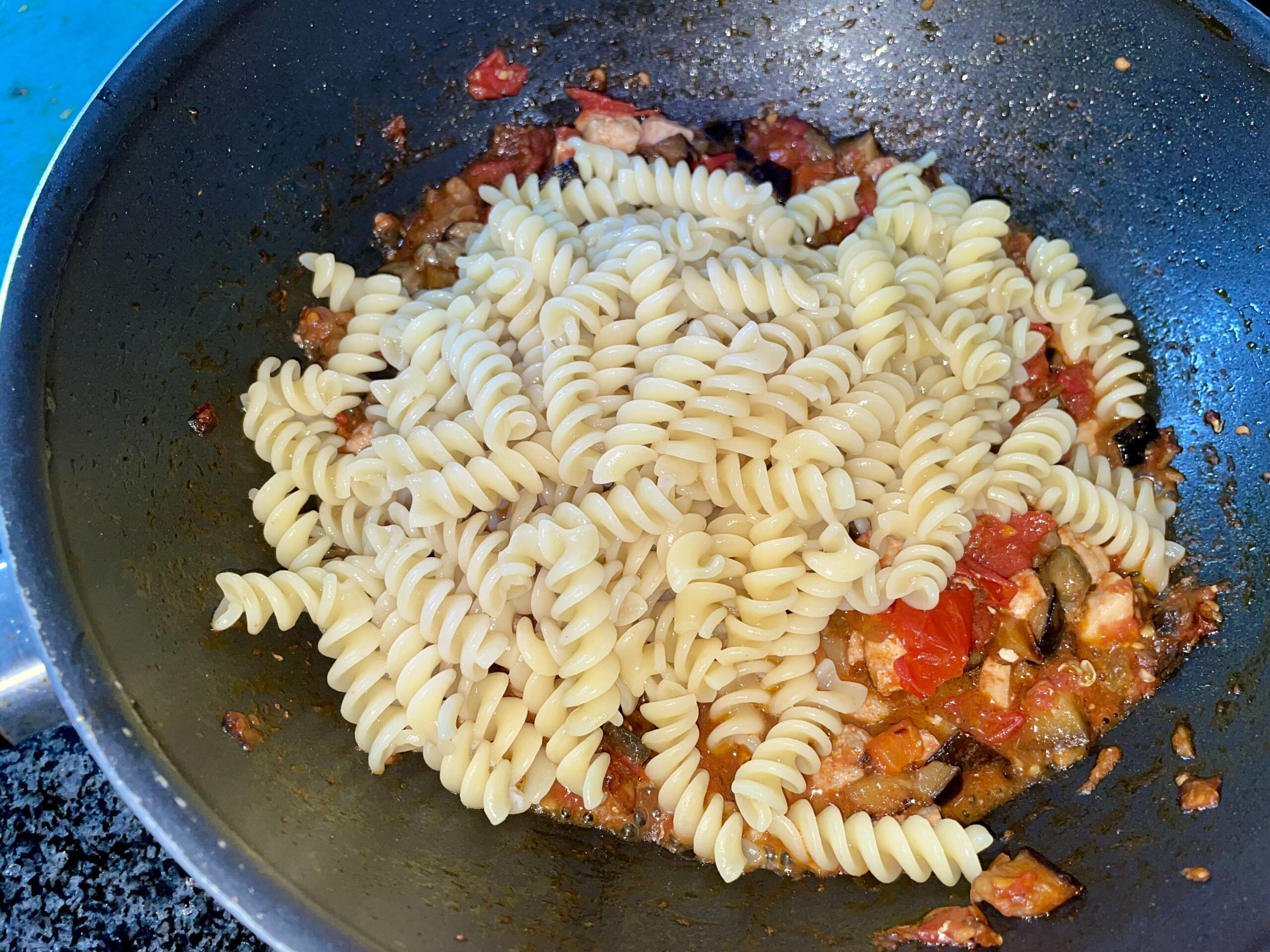 Cuocete la pasta al dente, colatela direttamente nella padella, e spadellate per un minuto a fiamma vivace.