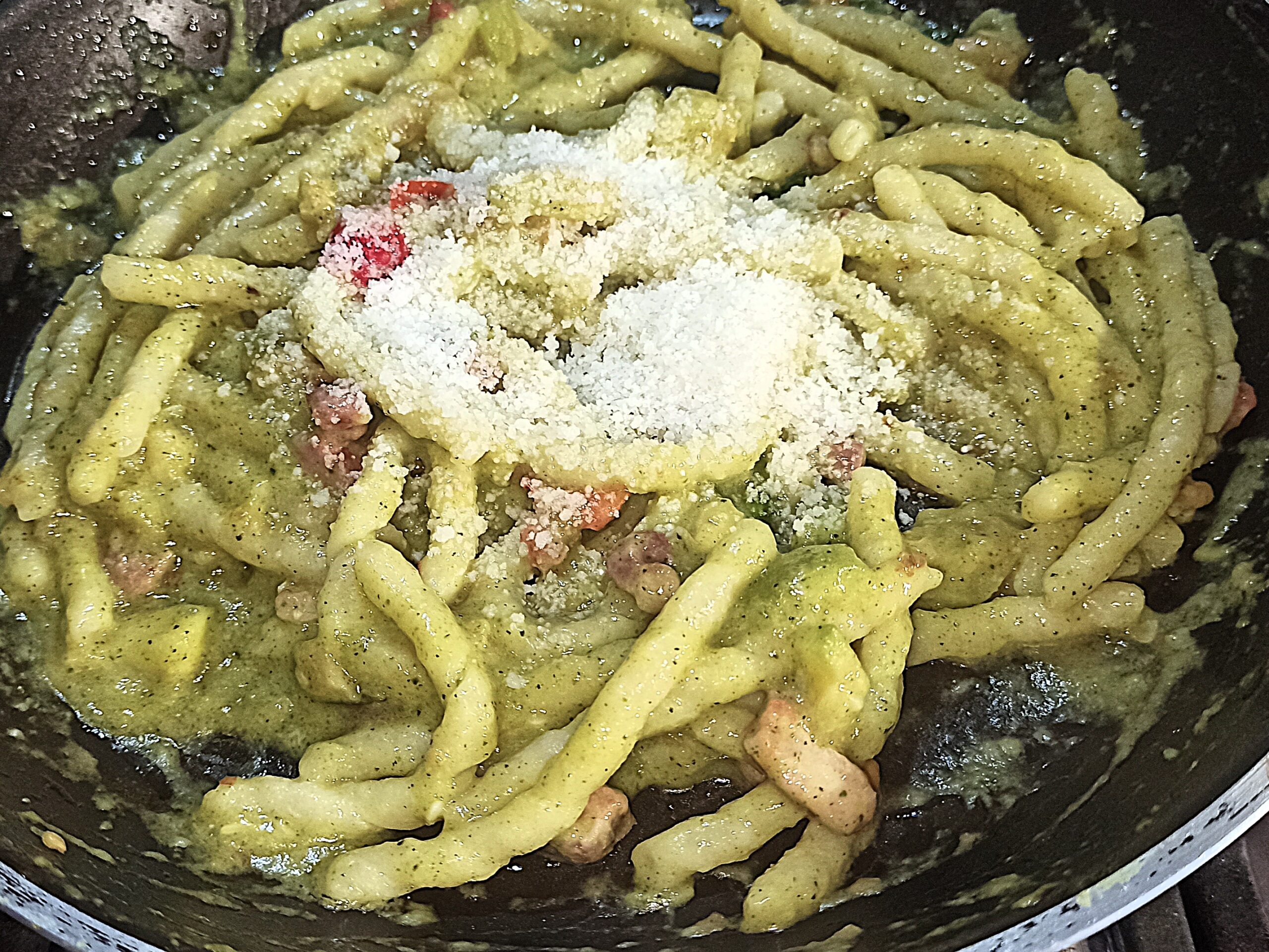 Spegnete la fiamma, aggiungete il pecorino, mantecate il tutto, aggiungete ancora qualche fogliolina di basilico.