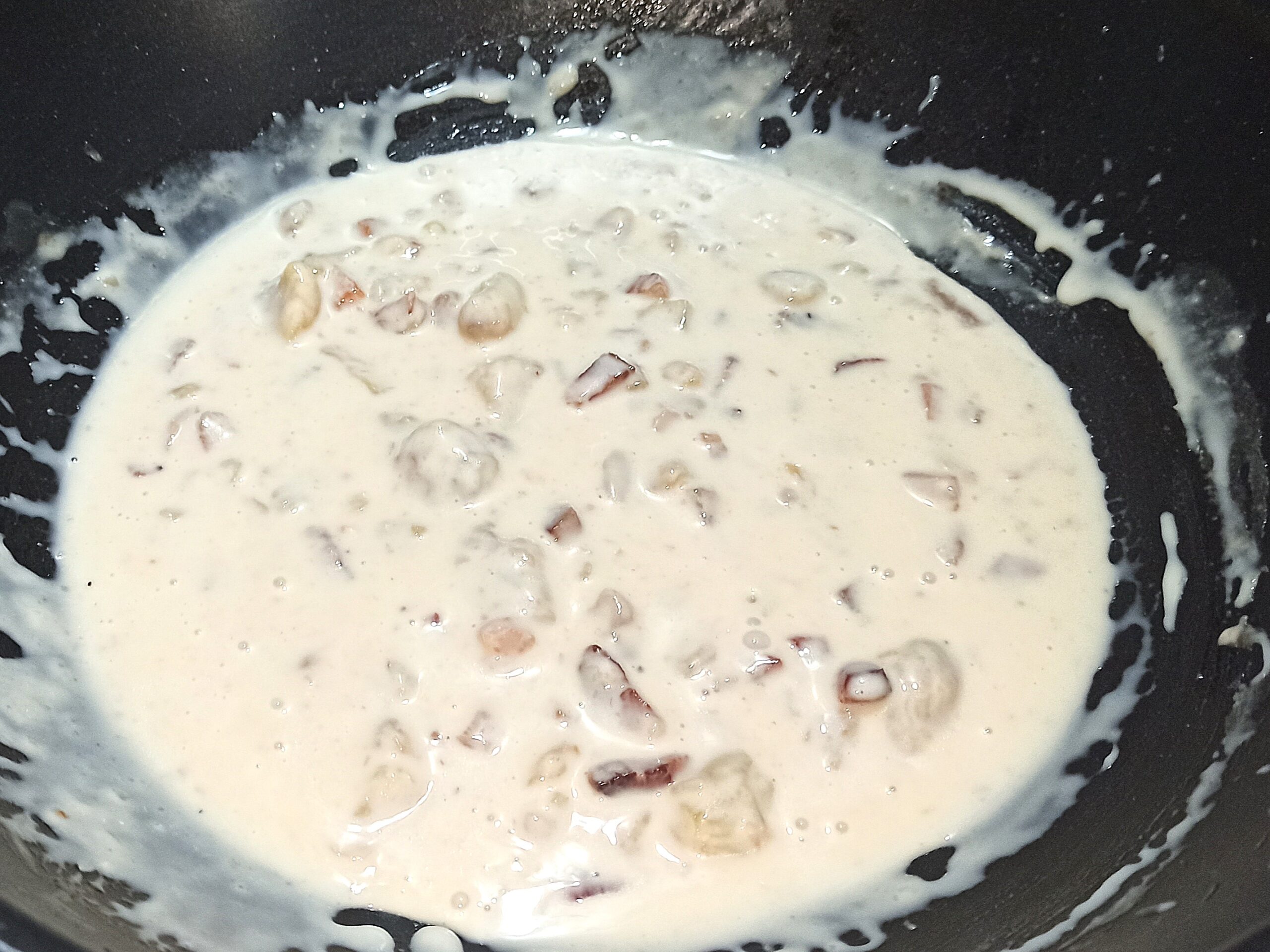 fate evaporare l’alcol e aggiungete la besciamella, regolate di sale e amalgamate il tutto.