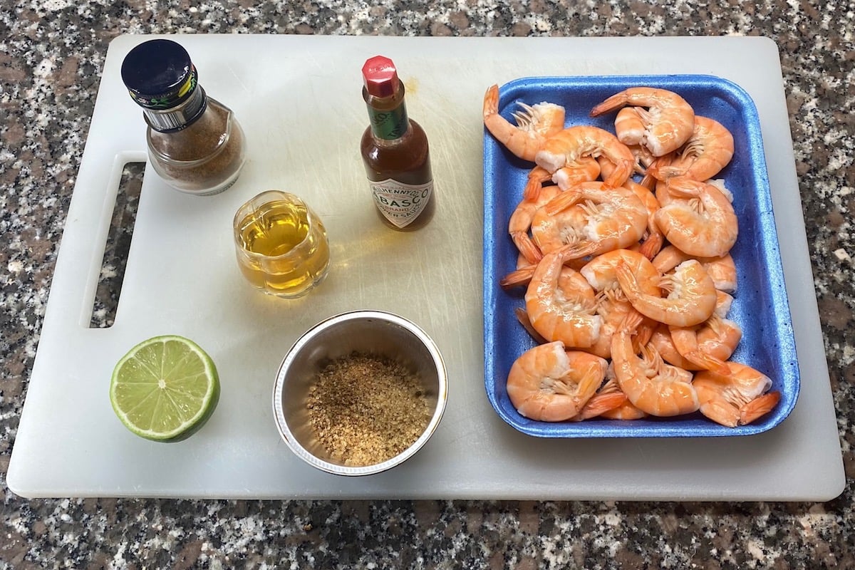 Potete fare il piatto con gamberi di tutti i tipi, freschi o decongelati come nel filmato. Il Rum deve essere quanto indicato, misuratelo o pesatene 40 g che è la stessa cosa. Il piatto va preparato su un fornello grande che terrete a fiamma media fino a prima di versare il Rum, quando lo metterete al massimo. Preparate tutti gli ingredienti in modo di averli pronti a portata di mano. Lavate e asciugate sommariamente i gamberi con carta da cucina, spremete il lime, misurate il Rum.