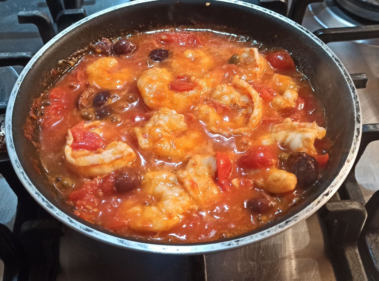 I gamberi o mazzancolle alla puttanesca, sono facili e veloci da preparare. Da servire come antipasto, aperitivo e/o secondo piatto. La dolcezza delle mazzancolle, incontra la sapidità delle olive e dei capperi, il tutto abbracciato da un irresistibile sughetto di pomodorini, molto invitante per la scarpetta finale. Se non siete amanti dei pomodorini, potete sostituirli con dei pomodori pelati, e o dal passato.