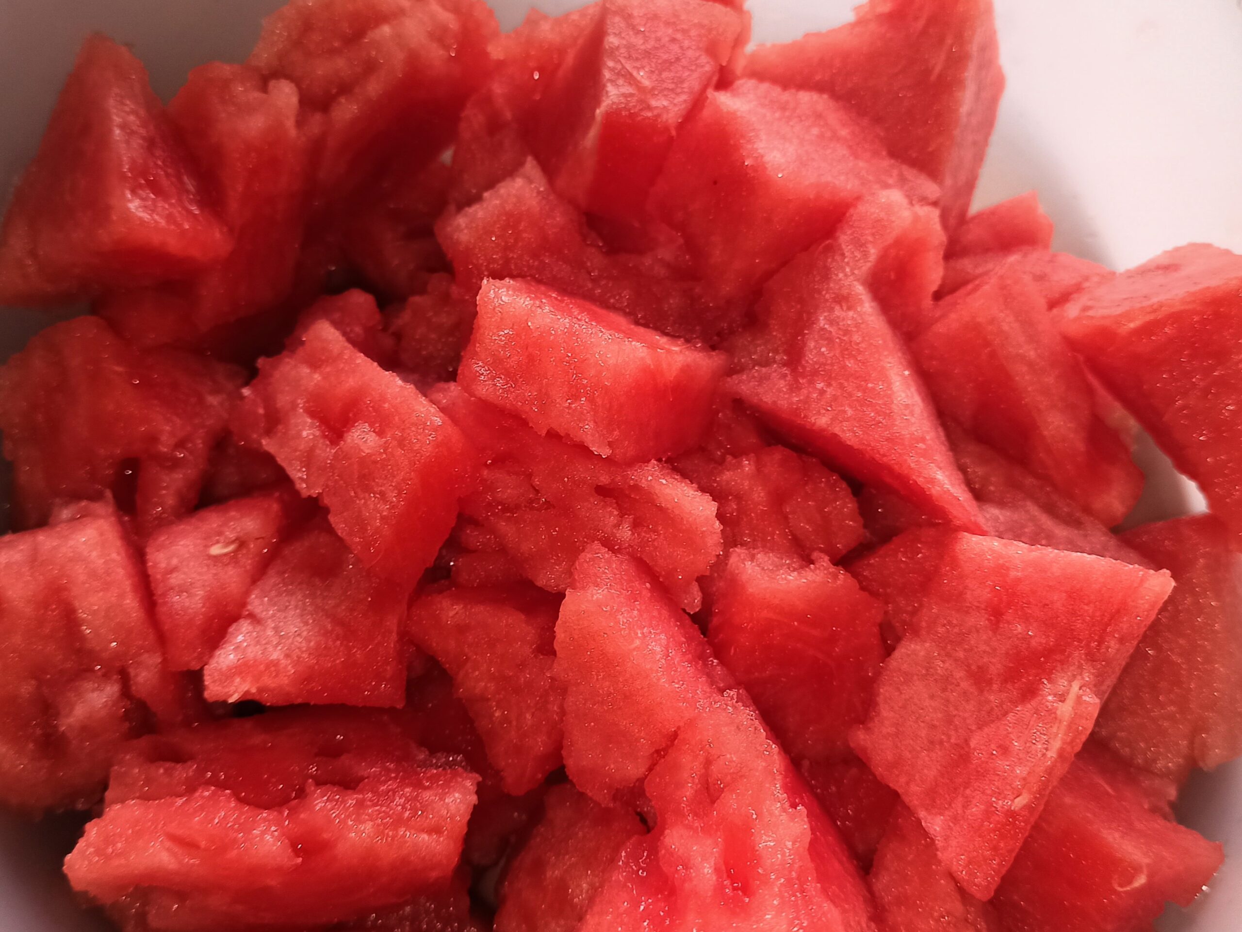 Per preparare il gelo d’anguria, eliminate la buccia ed i semi dall’anguria, tagliatela a pezzi.