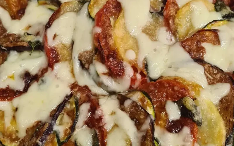 Adesso il Secondo strato: Sovrapponete un secondo strato di verdure seguendo lo stesso schema. Condite nuovamente con sale, basilico, parmigiano e olio. Aggiungere 2 cucchiai d’acqua sul fondo della teglia per mantenere le verdure morbide durante la cottura. Trasferite la teglia nella friggitrice ad aria. Cuocete a 170°C per 20-22 minuti , finché le verdure saranno morbide e leggermente dorate. A cottura ultimata, distribuire la mozzarella per pizza grattugiata sopra le verdure. Rimettete in friggitrice per 2-3 minuti, finché la mozzarella non si sarà sciolta. Portate in tavola la girandola di verdure calda, decorandola con qualche foglia di basilico fresco. Perfetta come piatto unico leggero o come contorno per una cena tra amici. Buon appetito!