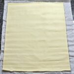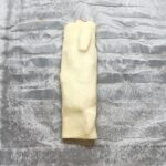 Per preparare le girelle di pasta sfoglia gusto pizza, iniziate ad aprire e posizionare sul piano da lavoro, il rotolo di pasta sfoglia e dividetelo in due, dal lato più lungo.