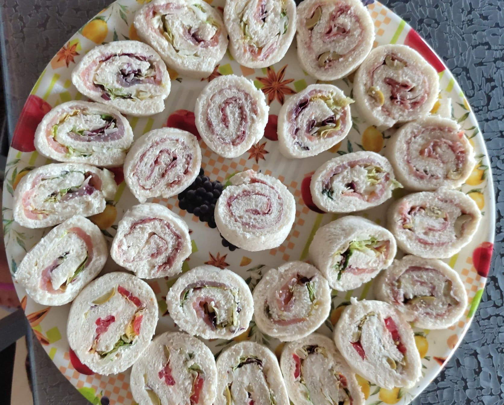Iniziate con le girelle al salmone: stendete leggermente con un mattarello una fetta di pane per tramezzini e successivamente spalmate il formaggio cremoso, lasciandone un po’ da parte. Disponete delicatamente le fettine di salmone sulla superficie del formaggio. Partendo da uno dei lati corti del rettangolo, arrotolate il pane e avvolgete il rotolo con la pellicola per alimenti. Lasciate riposare in frigo per 10 minuti, poi rimuovete la pellicola. Riprendete il formaggio residuo e spalmatelo sulla superficie del rotolo. Passate il rotolo sulla granella di pistacchio, premendo leggermente per farla aderire. Infine, tagliate il rotolo a fettine e le girelle al salmone sono pronte!