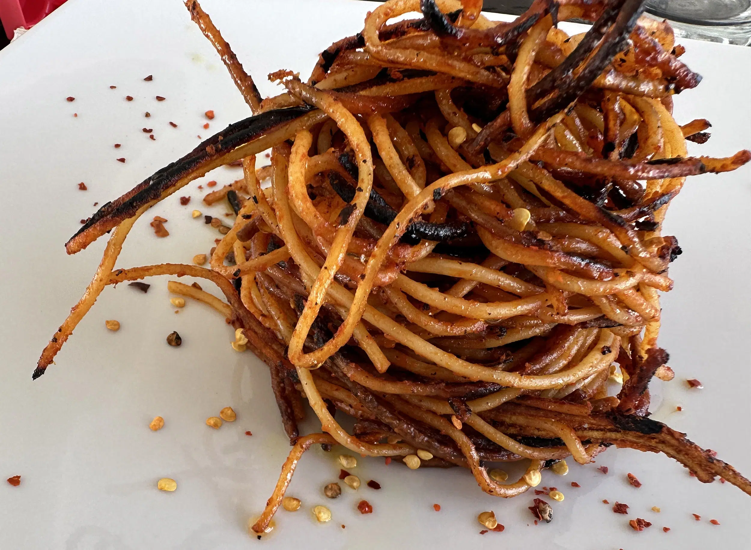Ora la cottura della pasta sta a voi. Perché? Perché dovrete capire voi come vi piace. Una volta la pasta più abbrustolita poteva essere un piacere, ora le cose sono cambiate ed è “cancerogeno”. A noi, non ci dite nulla, ma ci piacciono un po’ più “abbrustoliti” ( come in foto)