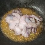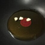 In una capiente padella, mettete un paio di giri abbondanti di olio evo, fate imbiondire ed eliminate gli spicchi d’aglio.