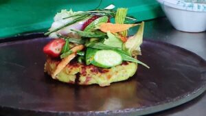 Consigliamo di adagiarci sopra un’insalatina di campo o magari della verdura cruda e croccante, insieme al morbido e caldo del burger sarà un matrimonio perfetto.