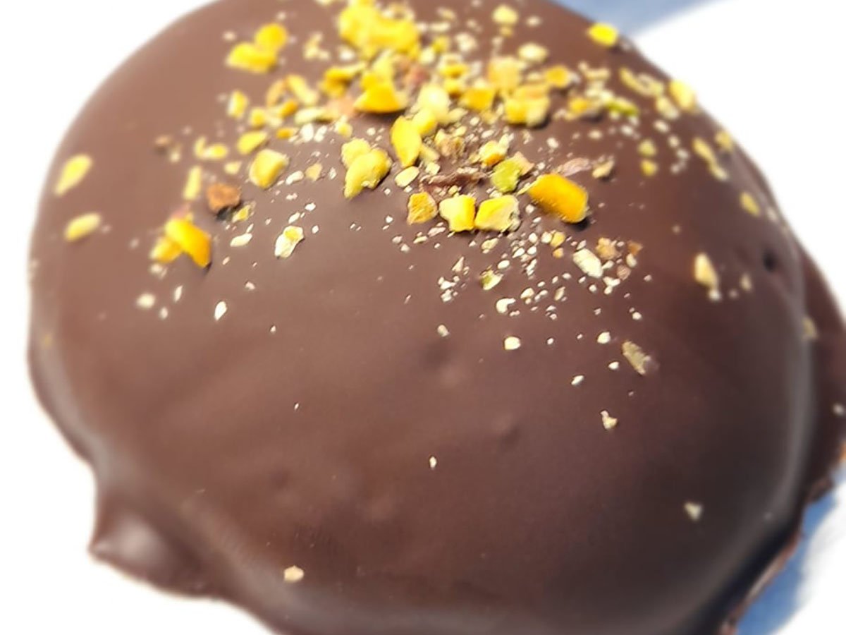 Cuocete a 180 gradi per 20 minuti. Quando il tempo è quasi trascorso, preparate la glassa al cioccolato. In un pentolino sciogliete il cioccolato fondente insieme agli altri 25 grammi di burro. Sfornati i biscotti, spennellateli con la marmellata alle arance. Glassateli poi immergendo direttamente la parte superiore del biscotto nella glassa al cioccolato. Completate con una bella spolverata di granella di pistacchio. Le vostre rame di Napoli sono pronte. Buon appetito.