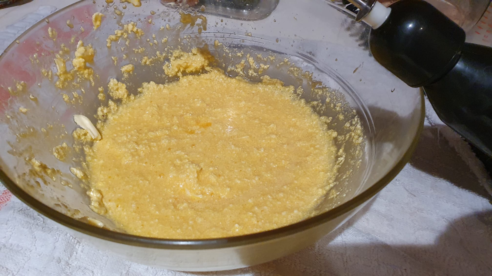 Inserite il resto della farina continuando a mescolare il composto non troppo energicamente, quindi mescolate ancora per un paio di minuti fino a quando il composto si rassoda.