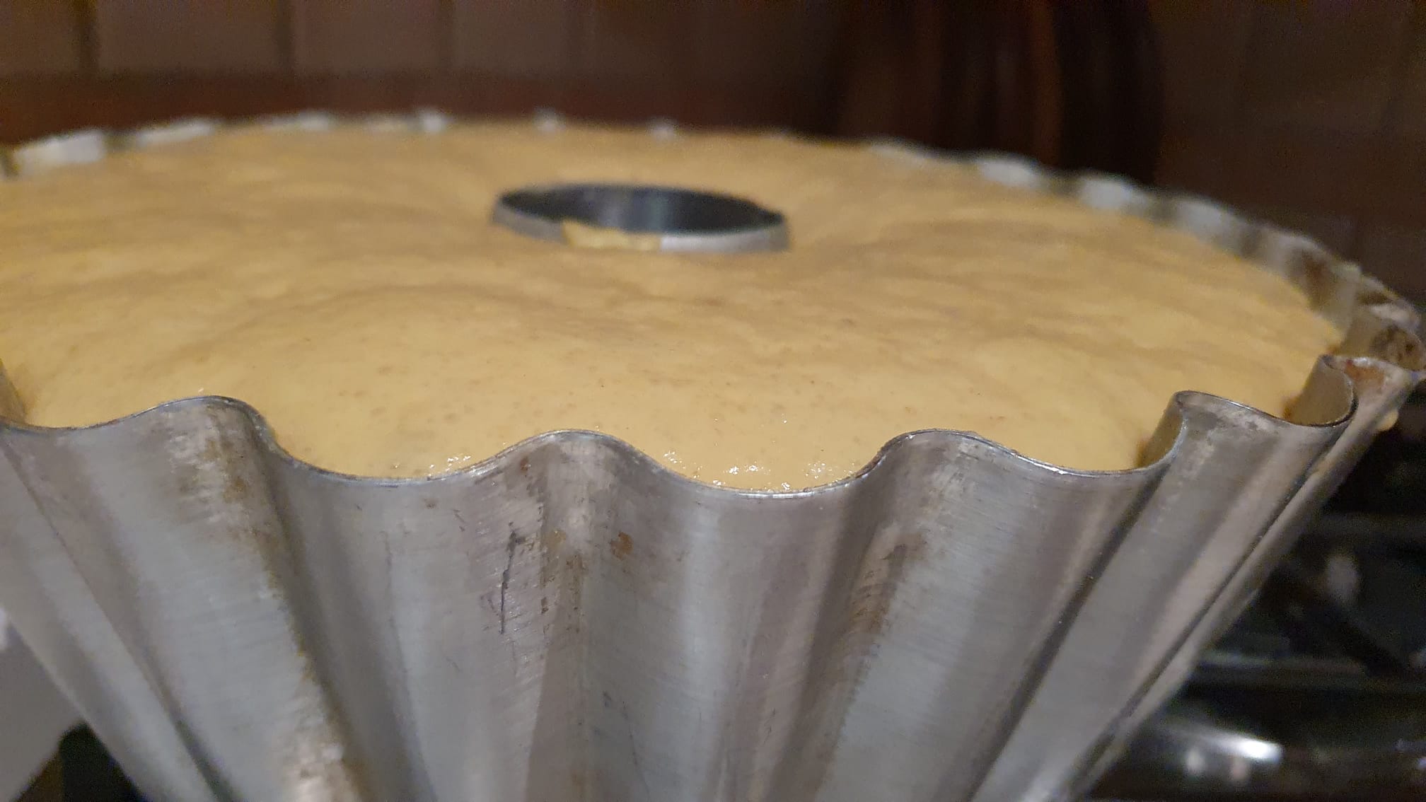 A questo punto versate l’impasto in uno stampo imburrato per babà. Coprite con della pellicola e lasciate lievitare nel forno con luce accesa per circa un ora e mezza, fino a quando il composto arriverà a circa 1 centimetro dal bordo dello stampo.