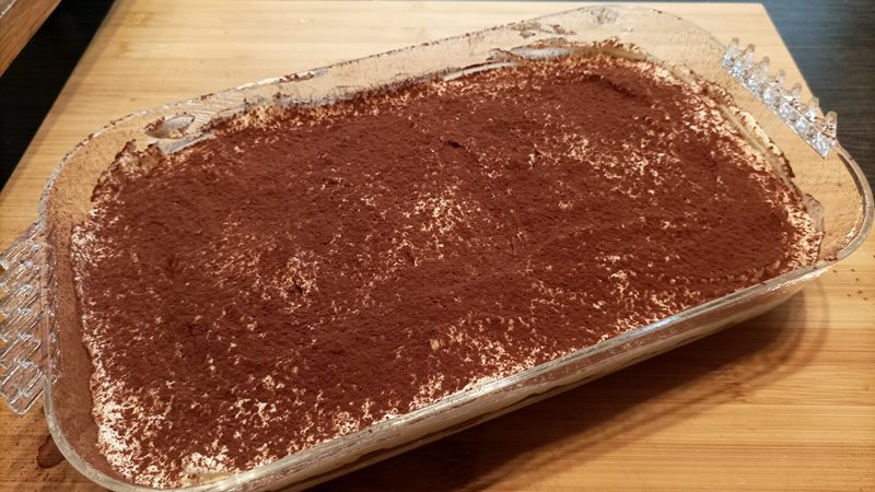 fate riposare in frigo qualche ora in modo che si rassodi, ed il tiramisù con panna e mascarpone è pronto da servire!