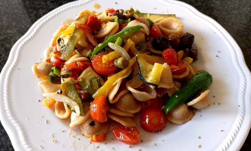 Un piatto appetitoso, fresco e colorato: orecchiette integrali con verdure e pomodorini, dal gusto ricco ed equilibrato, realizzato con ingredienti e sapori tipicamente mediterranei, amati da tutti!
