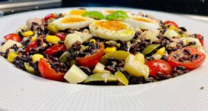 La preparazione dell’insalata di riso di Bruno Barbieri comincia dal giorno prima con la giardiniera. Tagliate peperoni, carote e sedano a pezzi e sbollentateli in aceto. Lasciate asciugare, unite il tutto e marinate nell’olio per un giorno intero. Da parte, seguite lo stesso procedimento con i funghi e i cuori di carciofi. Passiamo al momento della preparazione. Fate le uova sode, quindi passate alla realizzazione della salsina: in un mixer unite le uova, il prezzemolo, l’erba cipollina, i capperi dissalati, le acciughe, la ventresca di tonno, un po’ di scorza di limone.