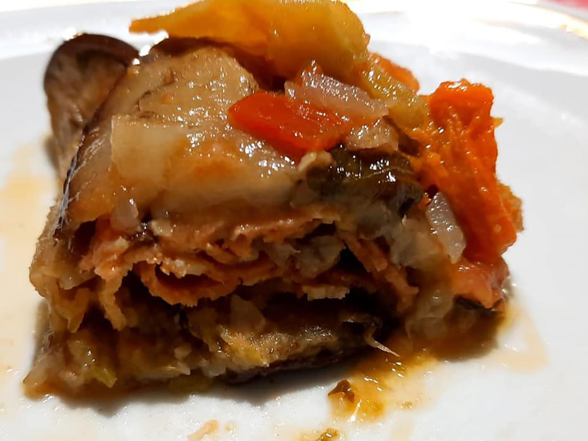 - Verdure cotte (zucchine, peperoni gialli, cipolla, aglio, pomodoro, basilico)