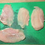 Posizionate le fettine di pollo sul paino da lavoro. e copritele con della carta forno, con l’aiuto di un batticarne, schiacciatele delicatamente.