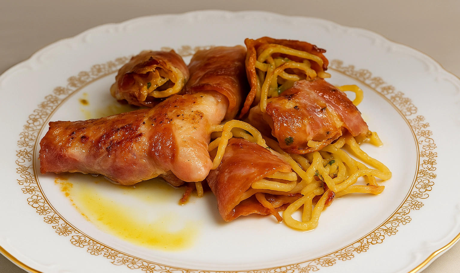 Porta a ebollizione l’acqua, salala e cuoci gli spaghetti al dente. Scolali e condiscili con un filo d’olio e, se vuoi, un po’ di parmigiano grattugiato o pepe.Riduci la provola o il fior di latte in cubetti piccoli o striscioline. Se usi fior di latte, assicurati che sia ben asciutto (puoi tamponarlo con carta assorbente).Su ogni fetta di prosciutto cotto disponi una porzione di spaghetti (puoi aiutarti con una forchetta per formare una “matassa”).