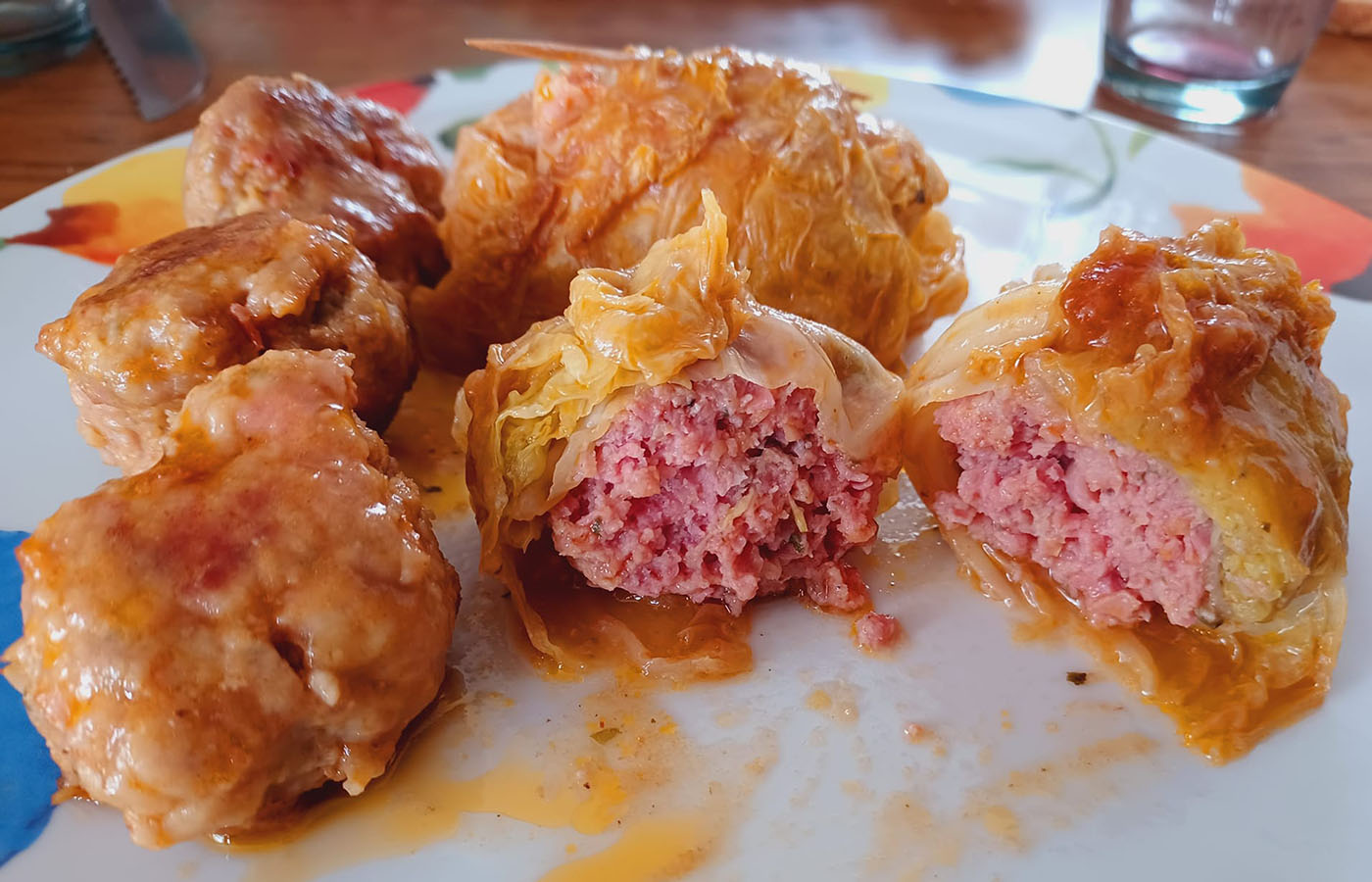 Strizzate il pane e trasferitelo in una ciotola capiente. Unite gli altri ingredienti: la carne macinata, il parmigiano grattugiato, il sale, il pepe, le uova sbattute. Impastate con le mani sino a ottenere un composto omogeneo. Riprendete le foglie di verza, posizionate abbondante composto e arrotolatele su se stesse. Tenetele in frigorifero. In padella scaldate abbondante olio evo.