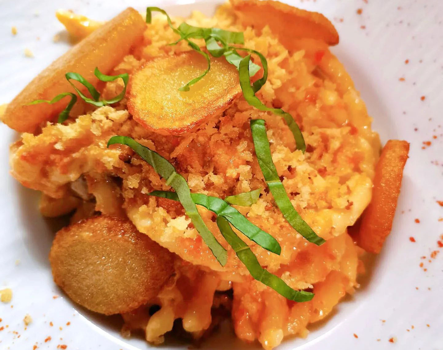 Scaldate abbondante olio di semi di girasole e friggete prima le fette di melanzane e poi quelle di patate. Trasferite su carta assorbente per eliminare l’unto in eccesso. In una padella antiaderente tostate il pangrattato. Lessate la pasta in acqua bollente salata. In una padella unite il pesto le melanzane fritte e la pasta e fate andare a fiamma vivace per pochi minuti. Unite per ultimo il pangrattato. Impiattate e completate con una spolverata di pecorino grattugiato e con le fette di patate fritte. La vostra pasta di monte san Giuiano è pronta. Buon appetito.