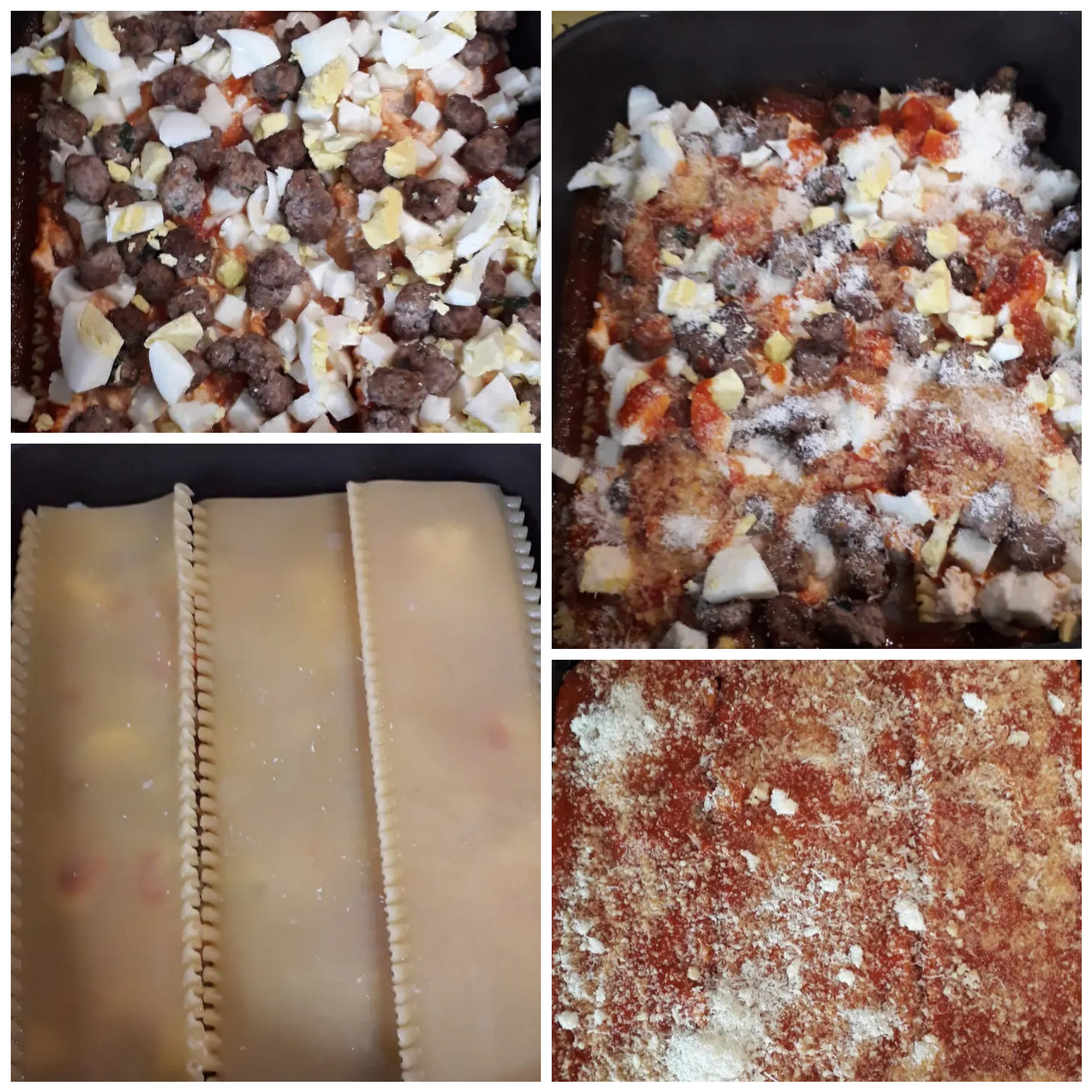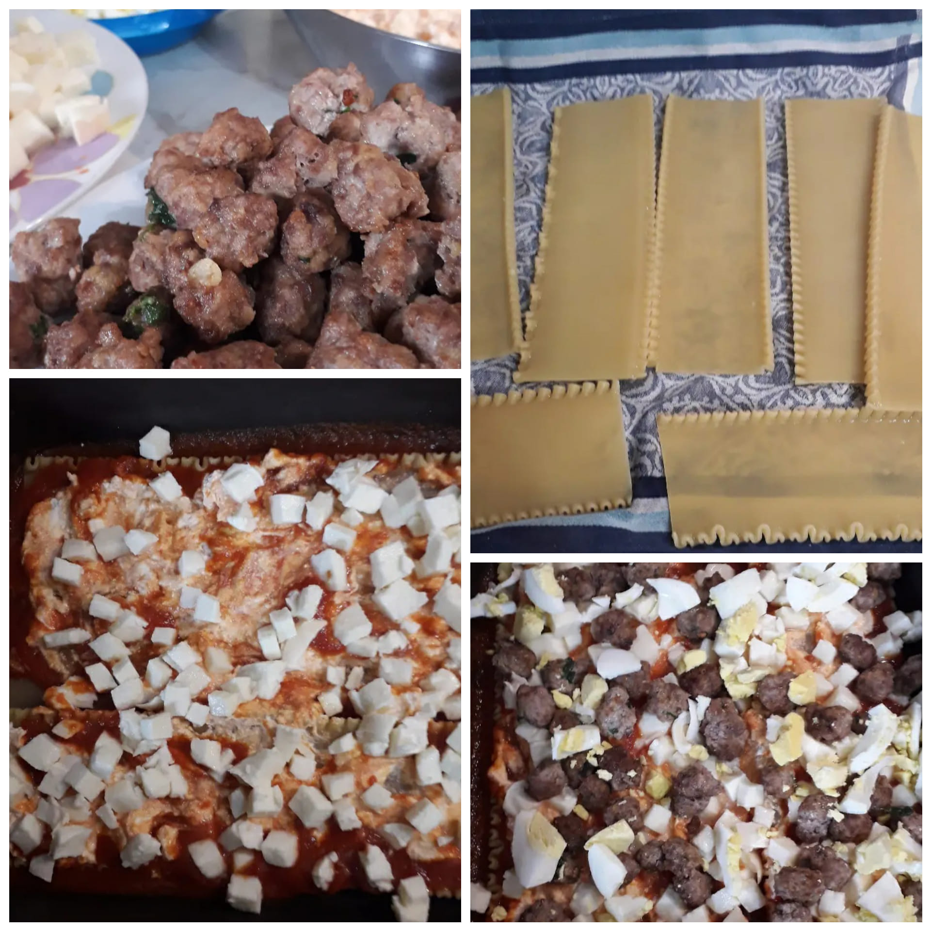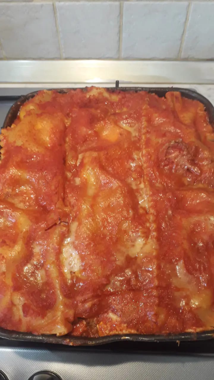 Ora non ci resta che Assemblare la lasagna. In una teglia da forno, stendere un mestolo di ragù sul fondo. Disporre il primo strato di sfoglia di lasagna fresca e coprire con un po’ di ricotta , polpettine, cubetti di provola, fettine di uovo sodo, parmigiano e abbondante ragù. Continuare con gli strati fino a esaurire gli ingredienti, terminando con sfoglia, ragù e abbondante parmigiano grattugiato. Cuocere in forno statico a 180°C per circa 30-35 minuti , fino a quando la superficie sarà dorata e croccante. Lasciare riposare la lasagna per almeno 15-20 minuti prima di servirla, così i sapori si assestano e la fetta risulterà più compatta. Servire calda con qualche foglia di basilico fresco per esaltare il profumo del ragù.