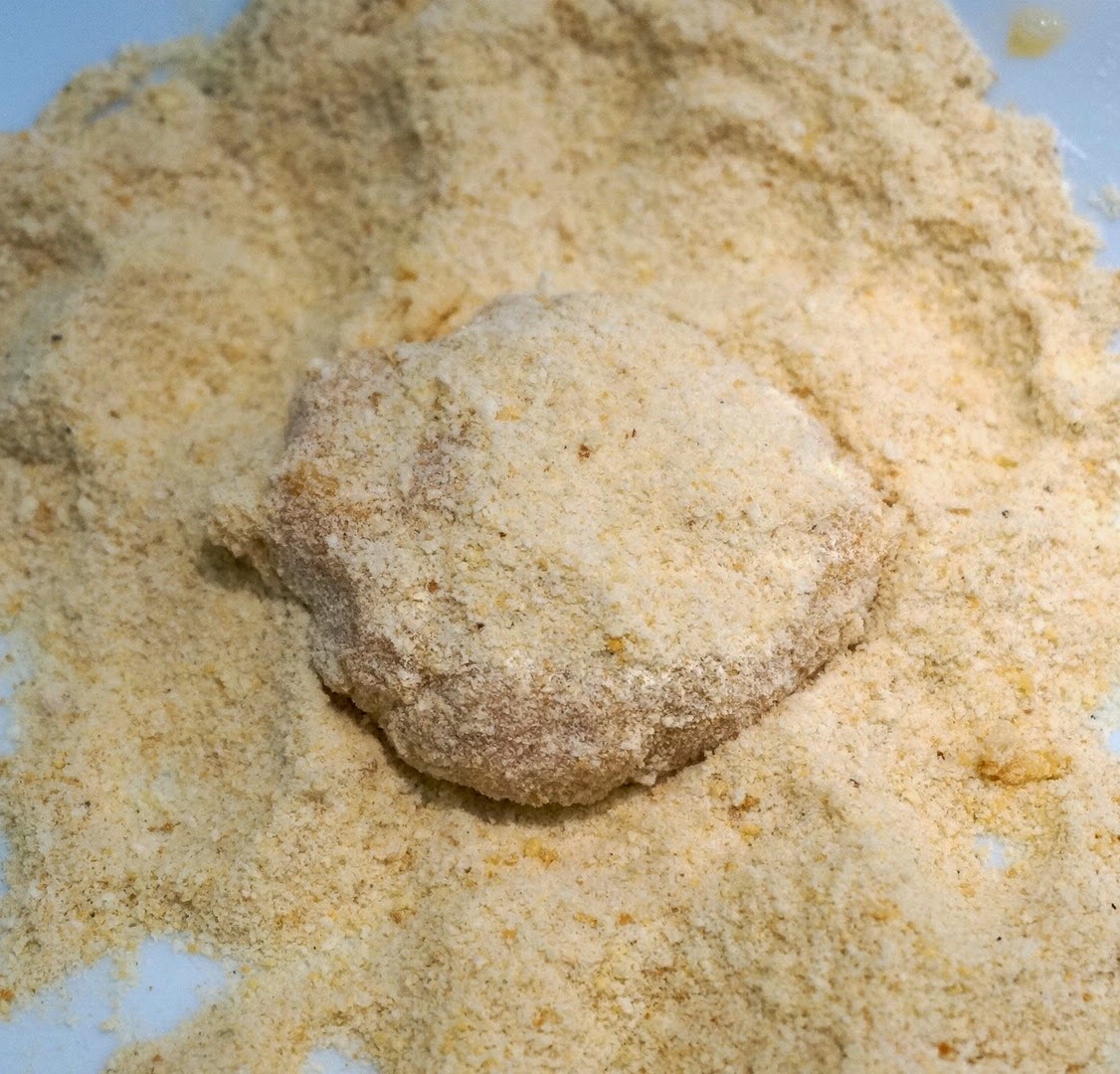 Richiudere bene la polpetta e passarla prima nella farina, poi nell’uovo e infine, nel pane grattugiato.