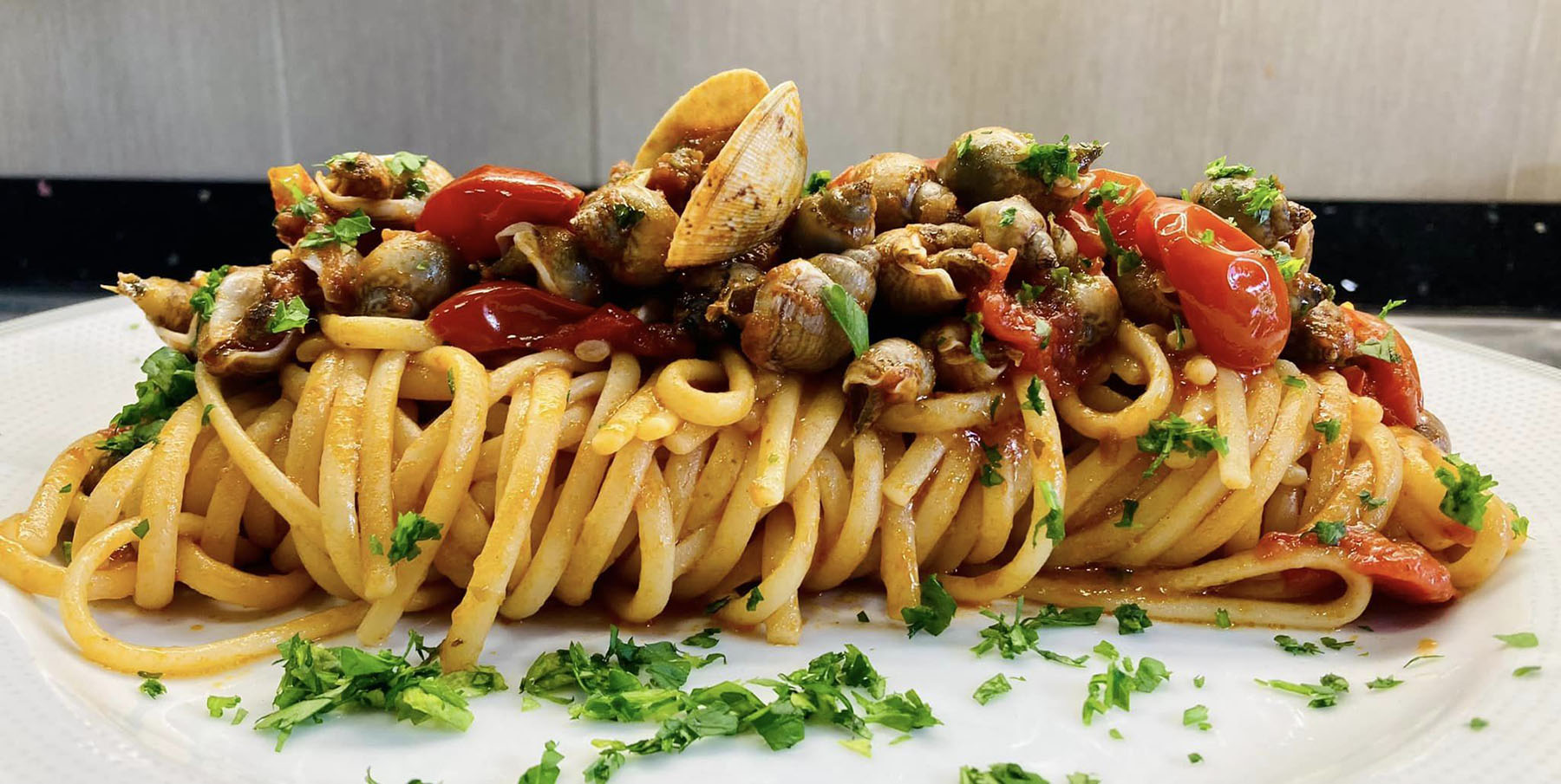 Linguine con lumache di mare,