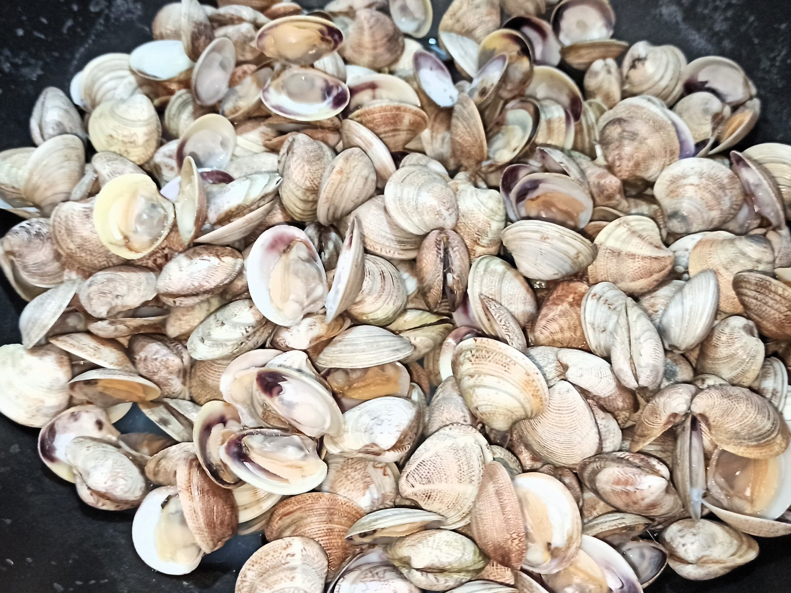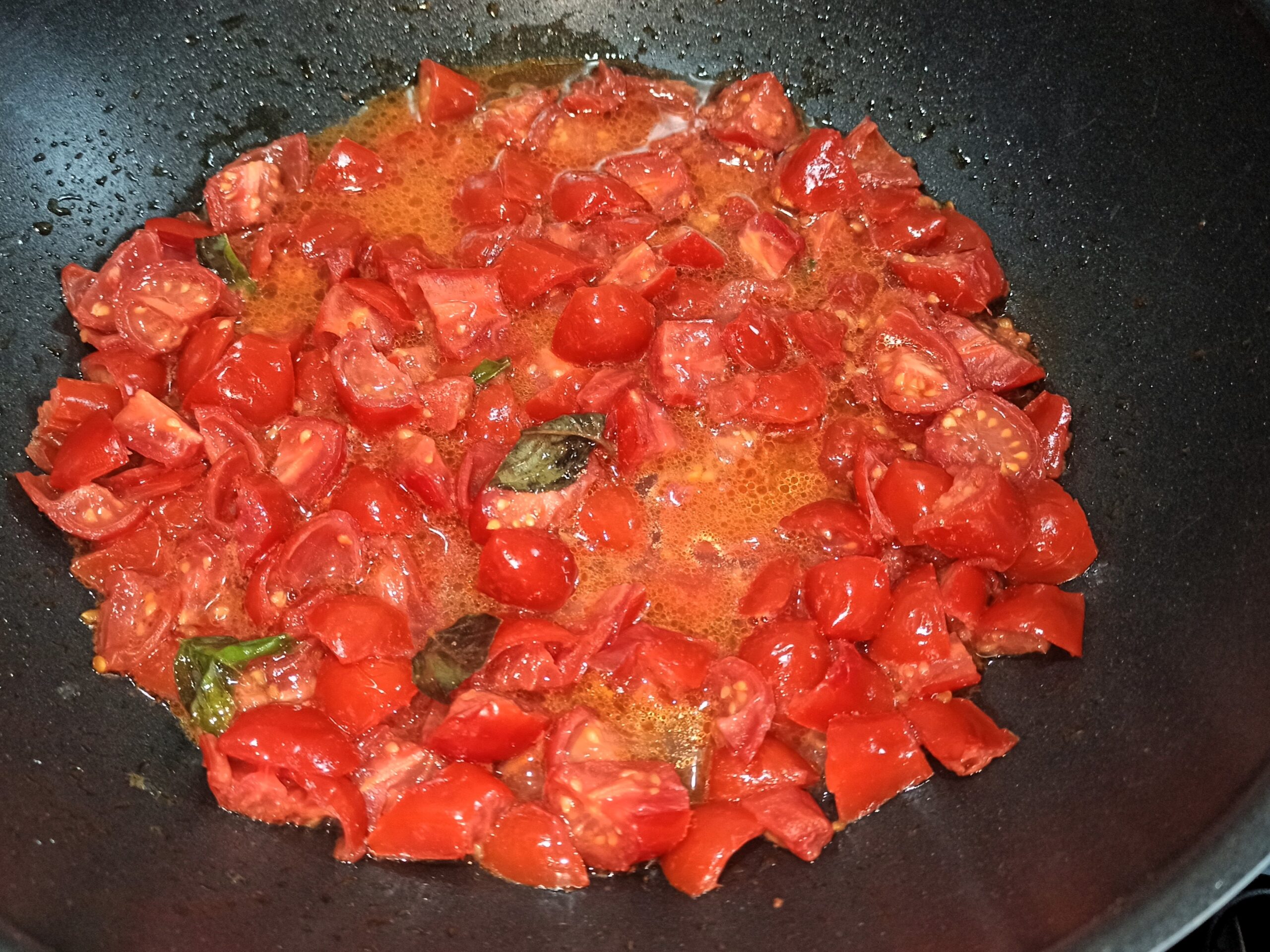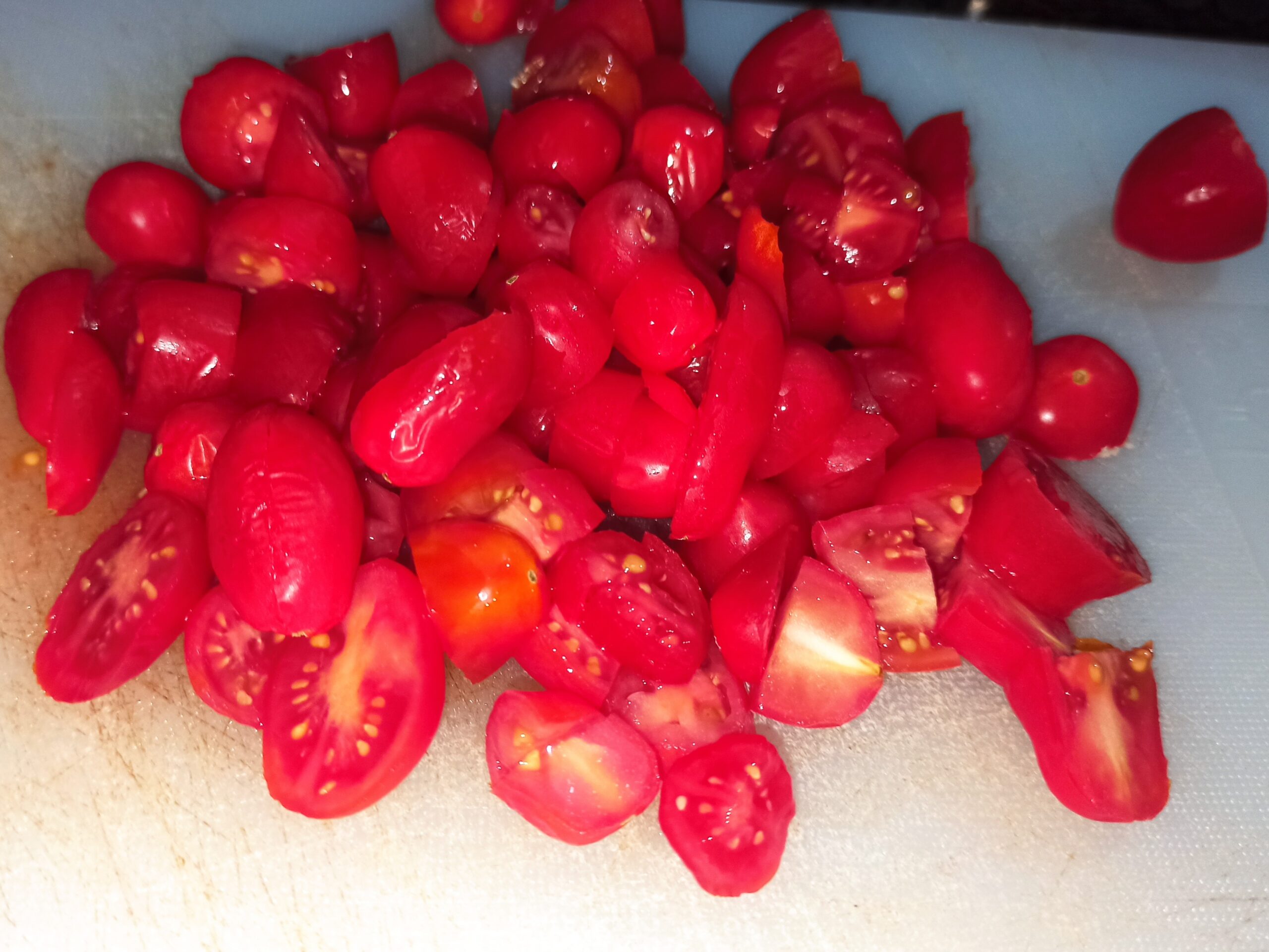Mano a mano che si aprono, metteteli in una ciotolina, fateli raffreddare ed eliminate i gusci, filtrate, e mettete da parte anche il liquido rilasciato. Lavate i pomodorini, tagliateli in quattro,