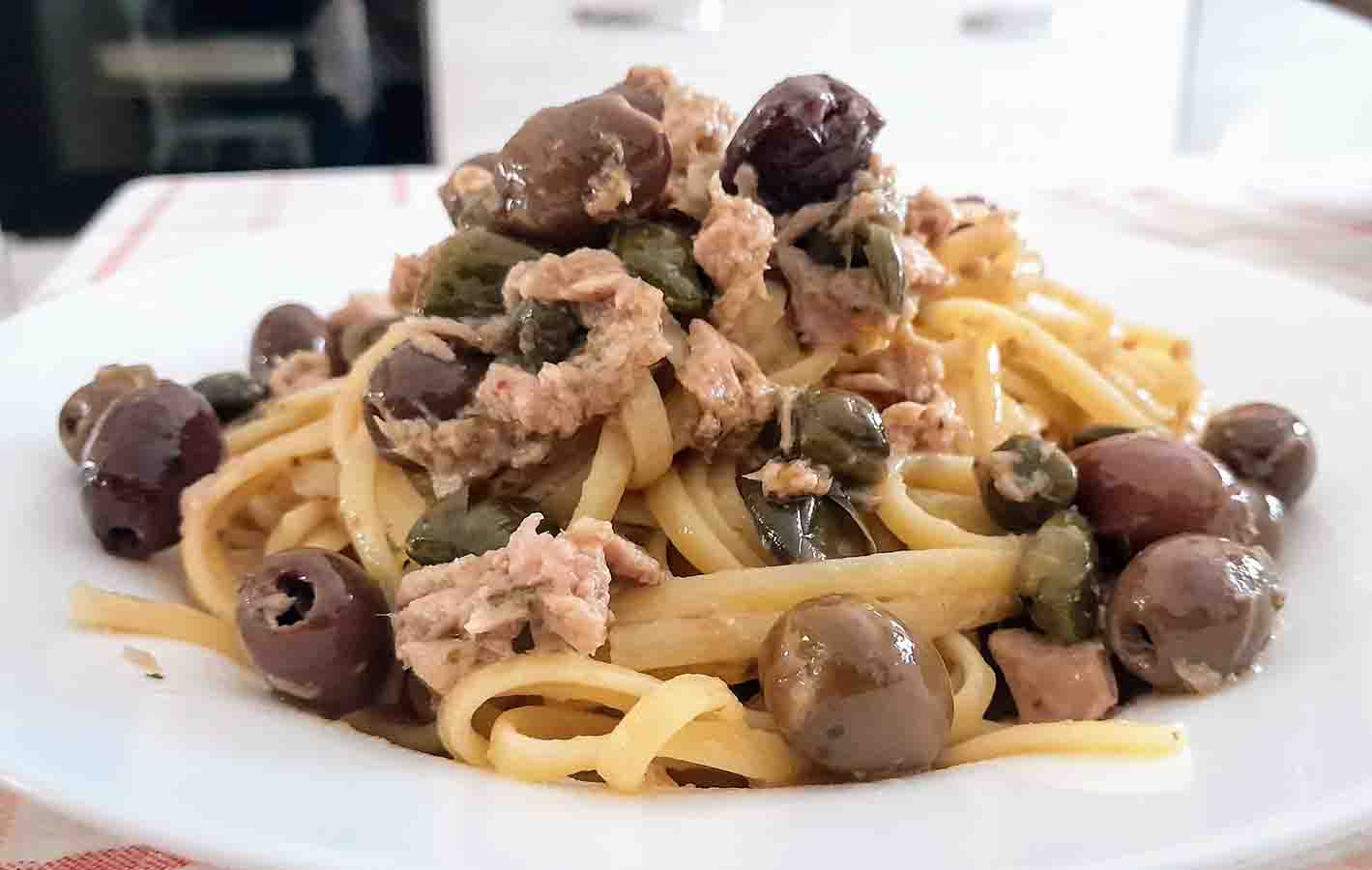 Ingredienti Linguine con tonno capperi olive e pecorino sardo