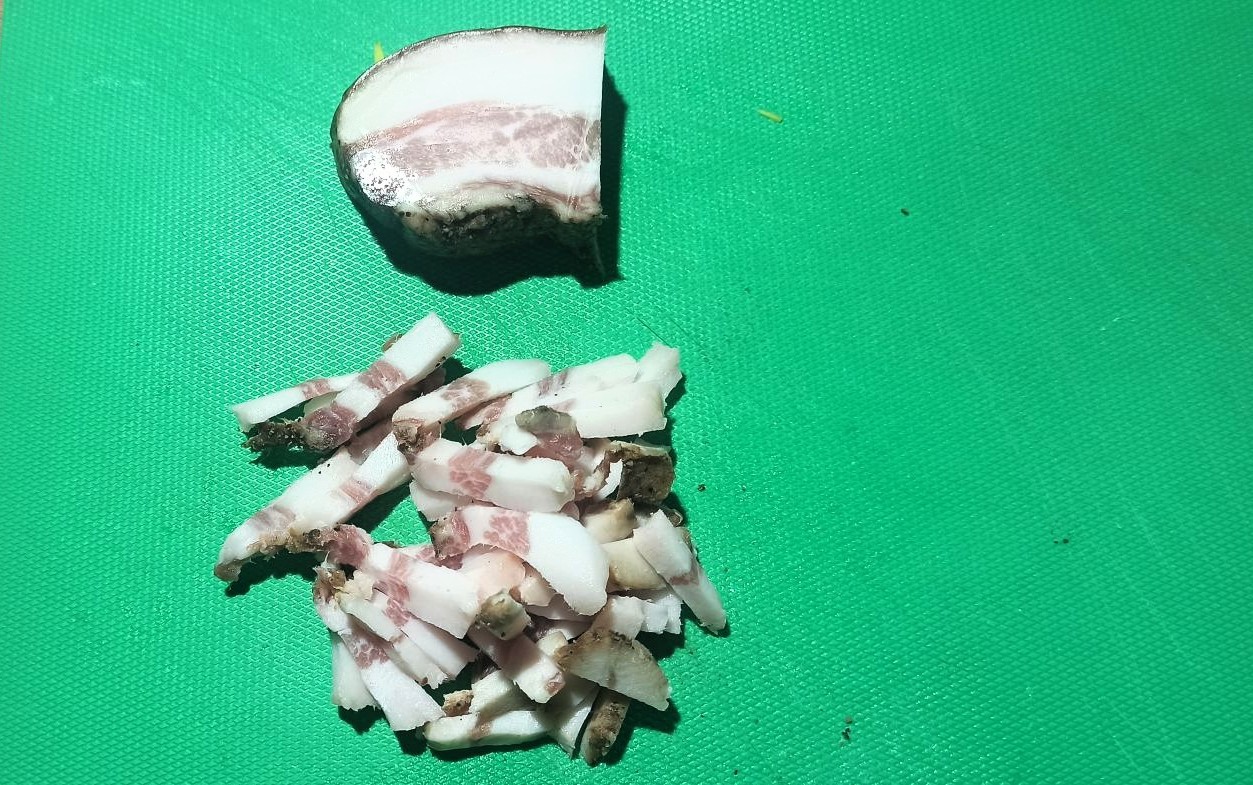 Tagliate anche il guanciale a pezzetti,