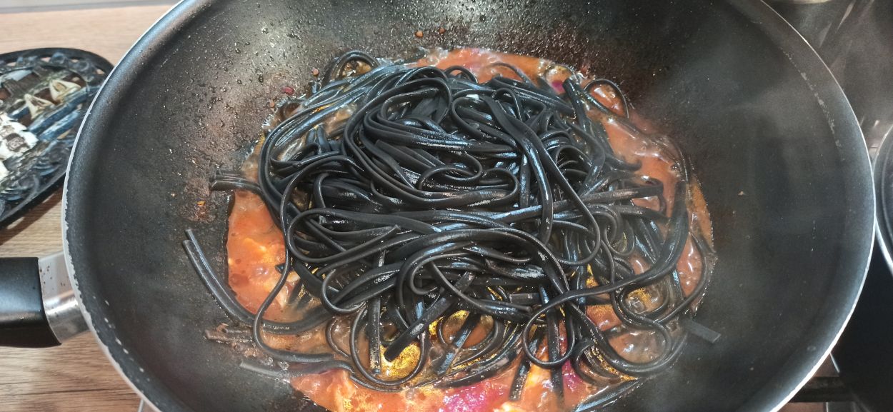 Non ero proprio entusiasta, nell’utilizzare questo tipo di pasta, ma poi alla fine mi sono dovuta ricredere. Generalmente ho sempre prelevato il nero direttamente dalla sacca delle seppie, ma se acquistate un buon prodotto, il risultato finale sarà fantastico. Potete abbinarlo con molti condimenti, io ho preparato un sughetto con un coccio ed una lucerna, che erano quelli che avevo in casa. Un primo piatto di mare, bello da vedere, ottimo da gustare. Preparatelo per un pranzo con amici, sicuramente farete un figurone. Ovviamente potete sostituire gli ingredienti e/o aggiungerne altri.