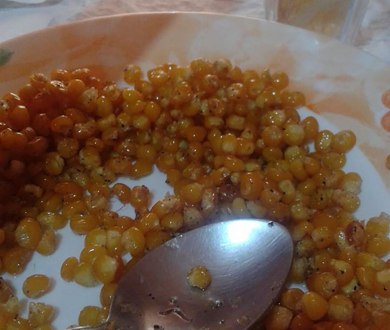 Raggiunta la temperatura desiderata, potete separare i chicchi di mais dalle spighe. Vi potete aiutare con un coltello seghettato. Strofinate poi i chicchi con le mani per separarli tra loro. In una padella scaldate il burro insieme all’olio di semi di girasole. Una volta che il burro è completamente sciolto, aggiungete anche i chicchi di mais. Aggiustate di sale e pepe e lasciate cuocere per 15 minuti. Durante gli ultimi minuti coprite con un coperchio per evitare che i chicchi scoppino. Il vostro mais fritto è pronto.