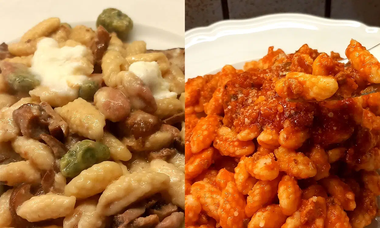 Cuocere gli gnocchetti in abbondante acqua salata e poi trasferirli direttamente nelle padelle con i condimenti.