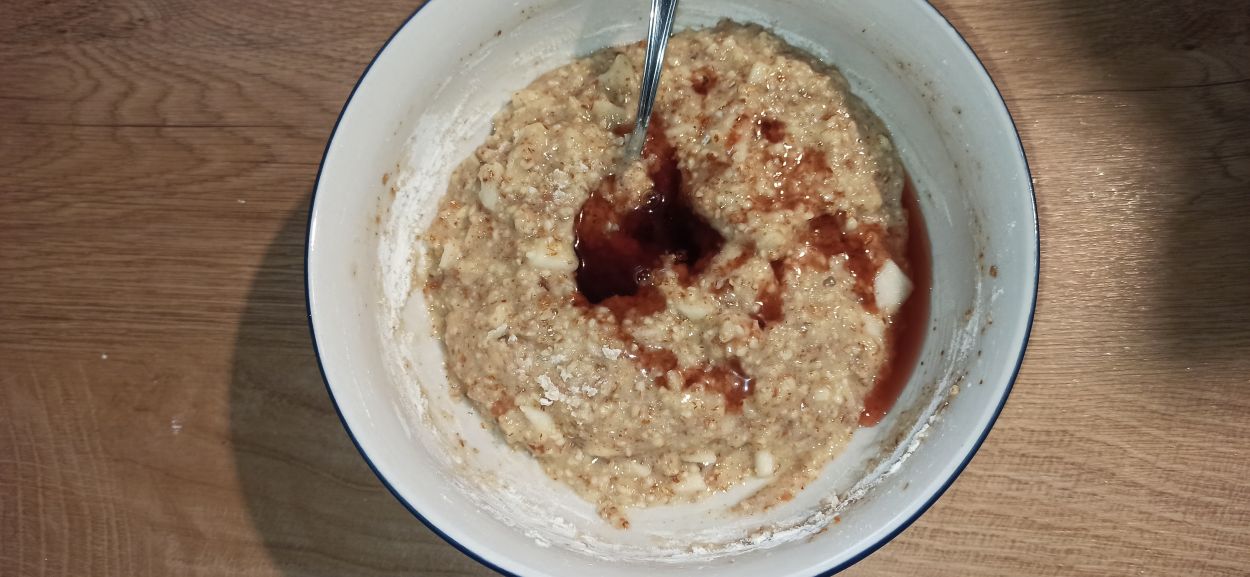 Azionate le lame, e tritatele, fino ad ottenere una farina, non molto fine. Per evitare che le lame si riscaldino troppo, vi consiglio di intervallare il funzionamento del mixer. Sbucciate e tagliate a pezzetti la mela. In una ciotola, mettete le mandorle tritate, la mela, lo zucchero a velo, l’ammoniaca e l’albume. Iniziate a mescolare, con l’aiuto di un cucchiaio.
