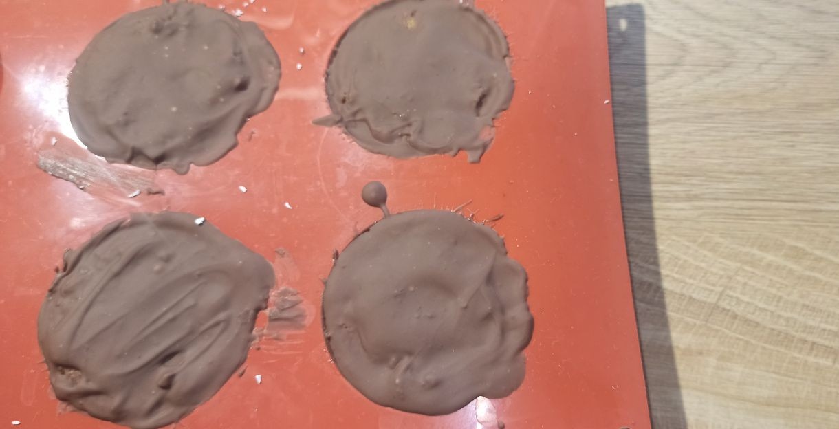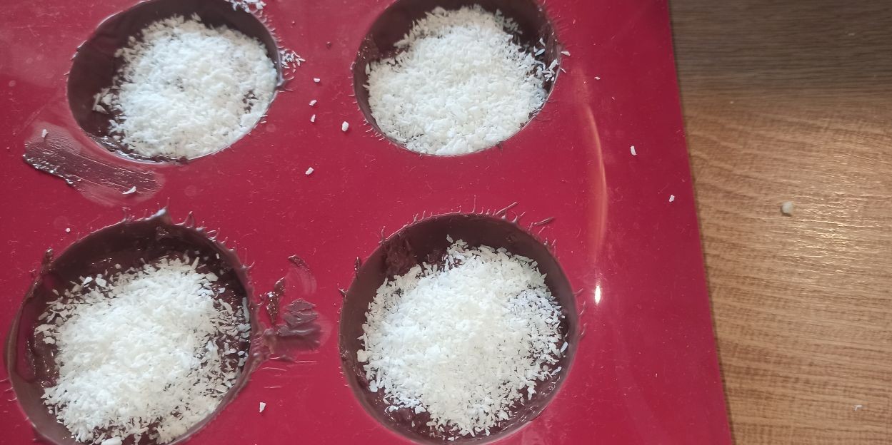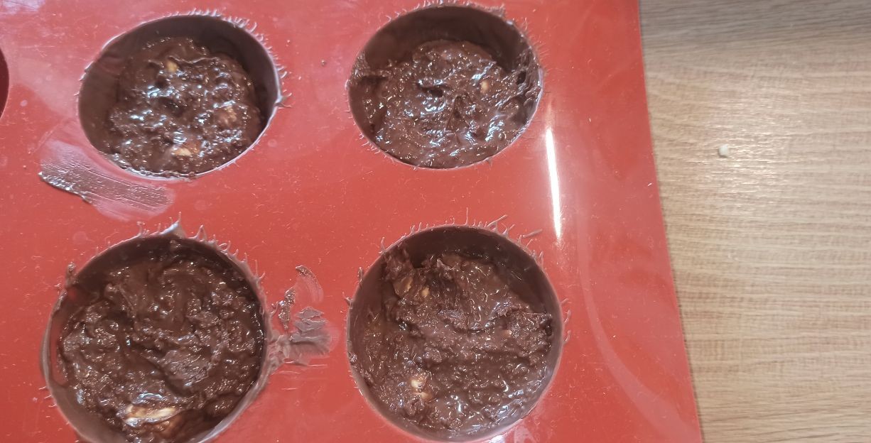 Dividete il composto ottenuto nelle forme di silicone, precedentemente foderate con il cioccolato fuso,