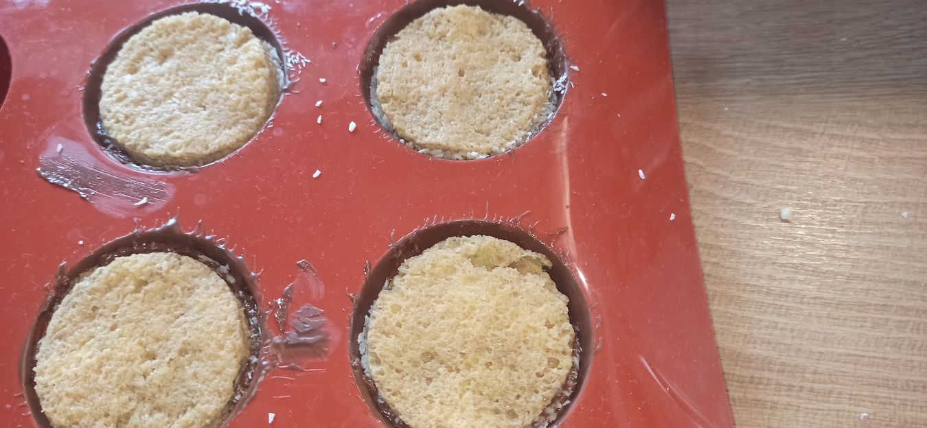 Riprendete gli stampi dal frigo, bagnate i dischi ottenuti dalla colomba, nella soluzione di caffè ,acqua e rum, ed posizionateli all’interno di ogni stampino.