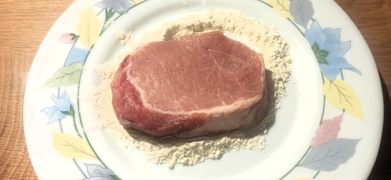 Per preparare i medaglioni di maiale al whisky, mettete la farina, il sale ed il pepe in un piatto. Mescolate bene i tre ingredienti fra di loro, e infarinate i medaglioni di maiale da tutte le parti.