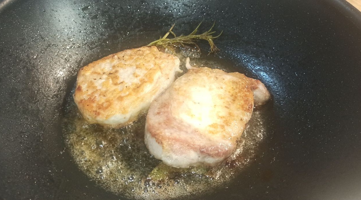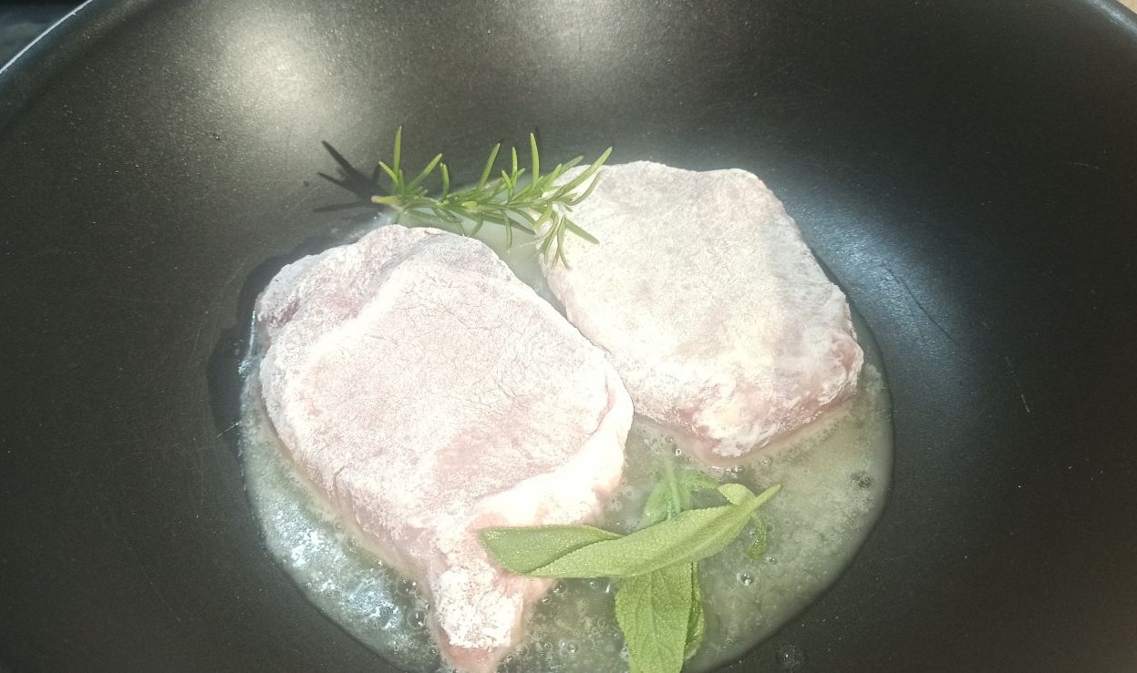 Aggiungete la salvia ed il rosmarino ed adagiate i medaglioni fateli rosolare a fiamma media, un minuto per lato.