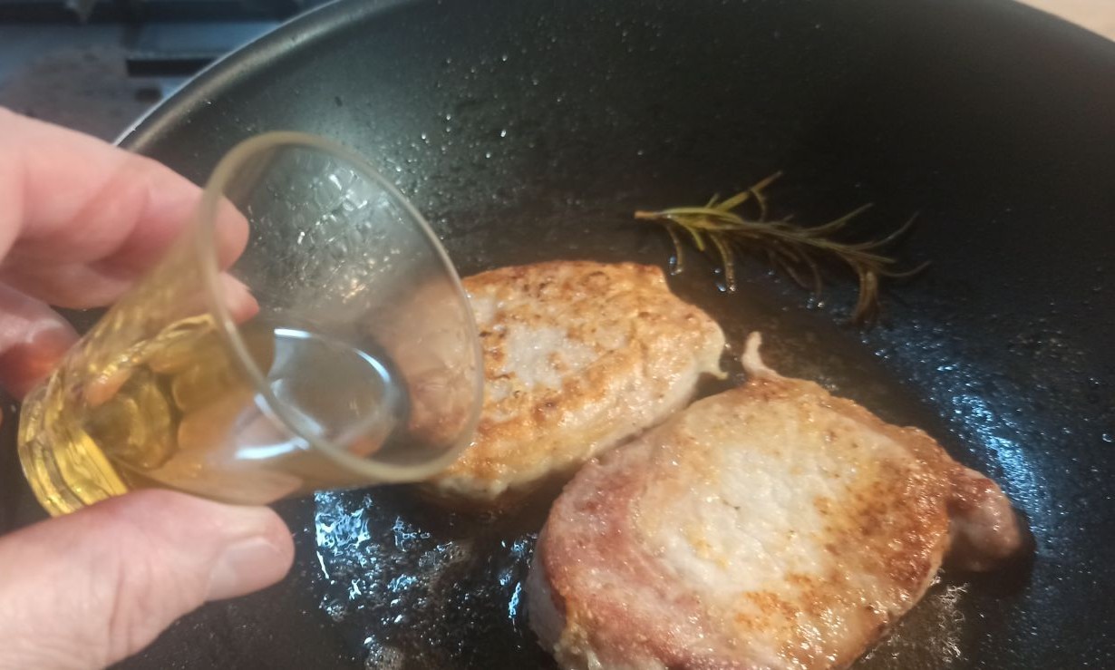 appena l’alcol sarà evaporato, diminuite la fiamma, e continuate la cottura, con la padella coperta per altri cinque minuti per lato.