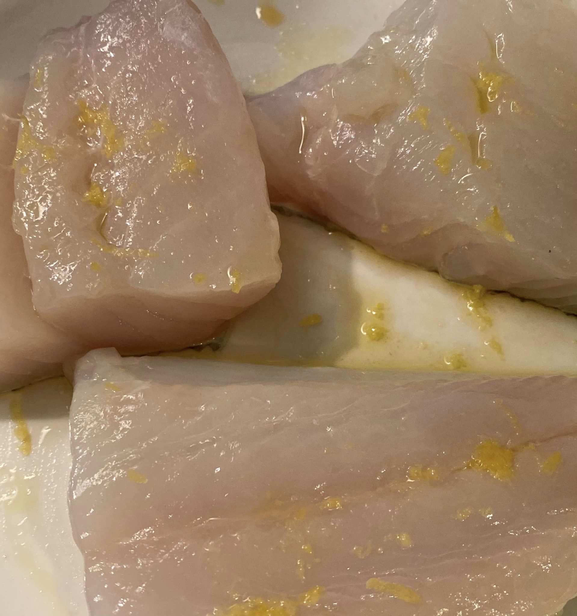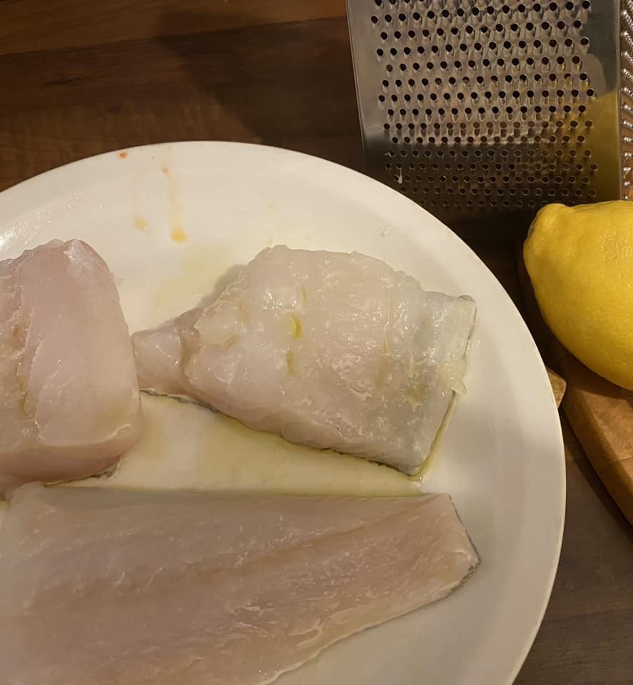 Nel frattempo saliamo e pepiamo quanto basta i filetti di merluzzo, li bagniamo con un filo d’olio e su di essi grattiamo delle scorze di limone. Dopo 20 minuti ritiriamo la teglia dal forno, adagiamo il pesce in teglia pelle all’insu’ ed inforniamo per 10 minuti circa. Quando a fine cottura, ritiriamo la teglia, spruzziamo il succo di mezzo limone sui filetti e spolveriamo con del prezzemolo tritato. Impiattiamo adagiando il merluzzo in un letto di ingredienti e sapori mediterranei. Buon appetito