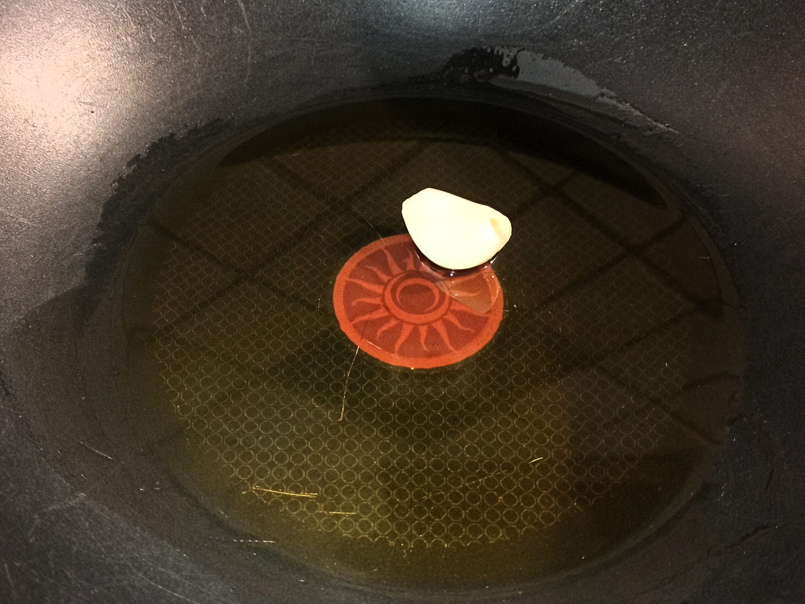 In una capiente padella, mettete un giro d’olio evo, fate imbiondire ed eliminate lo spicchio d’aglio.