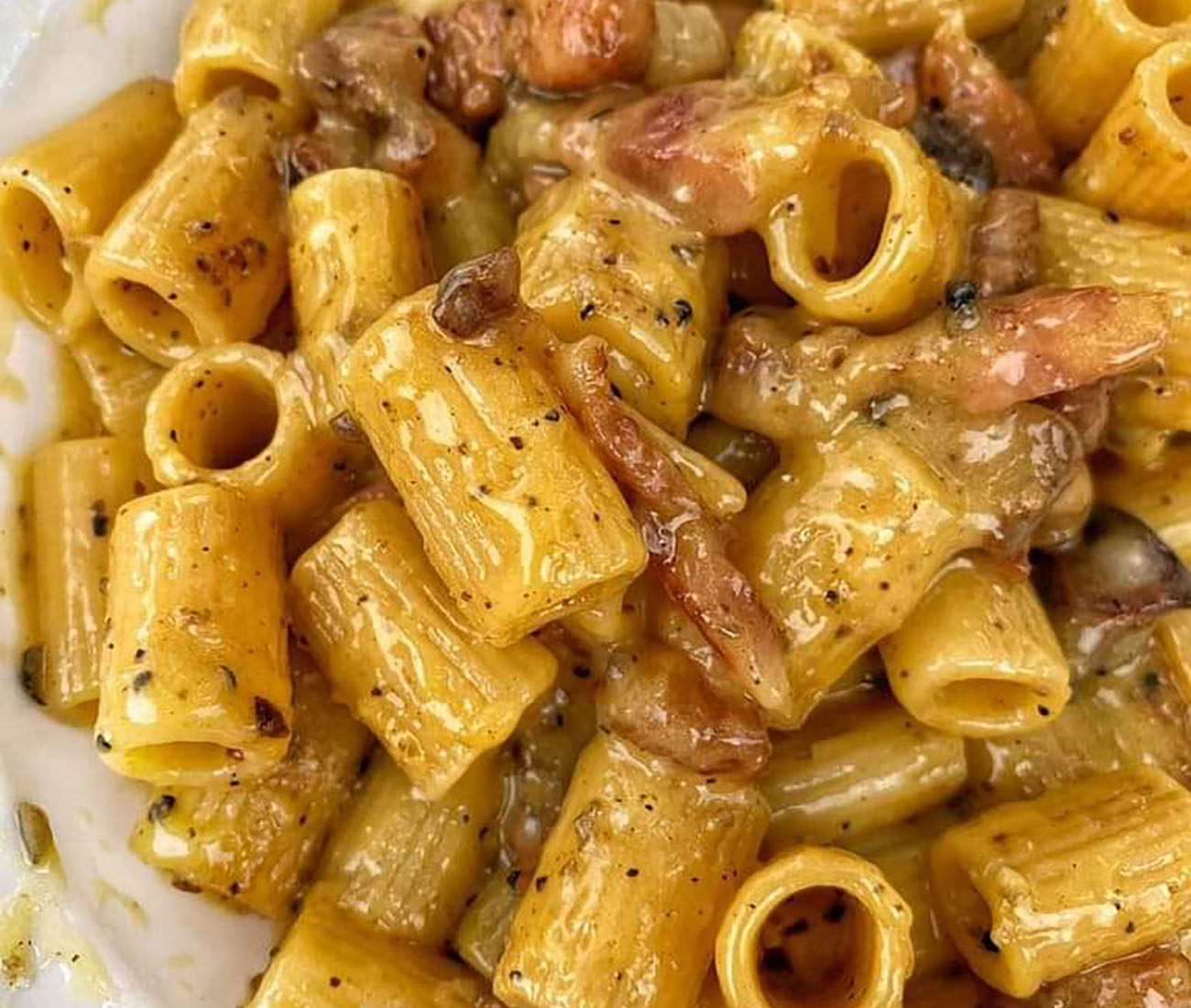 Quando i funghi saranno ben cotti, aggiungete nella pentola la crema di uova e panna e mischiate bene. Scolate la pasta al dente e versatela subito nella padella con il condimento. Girate il tutto e impiattate. I vostri mezzi paccheri alla capa e ‘mbrella sono pronti. I funghi cotti nel burro, insieme alle uova mischiate con la panna, sembrano un mix assurdo. E invece ogni boccone di questo piatto, cremoso e saporito, vi farà venire voglia di un altro e ancora un altro boccone. Buon appetito. LEGGI ANCHE—> Paccheri cozze e pecorino, non ditelo ai romani che è più buona di cacio e pepe. Cannavacciuolo la fa con questi trucchi