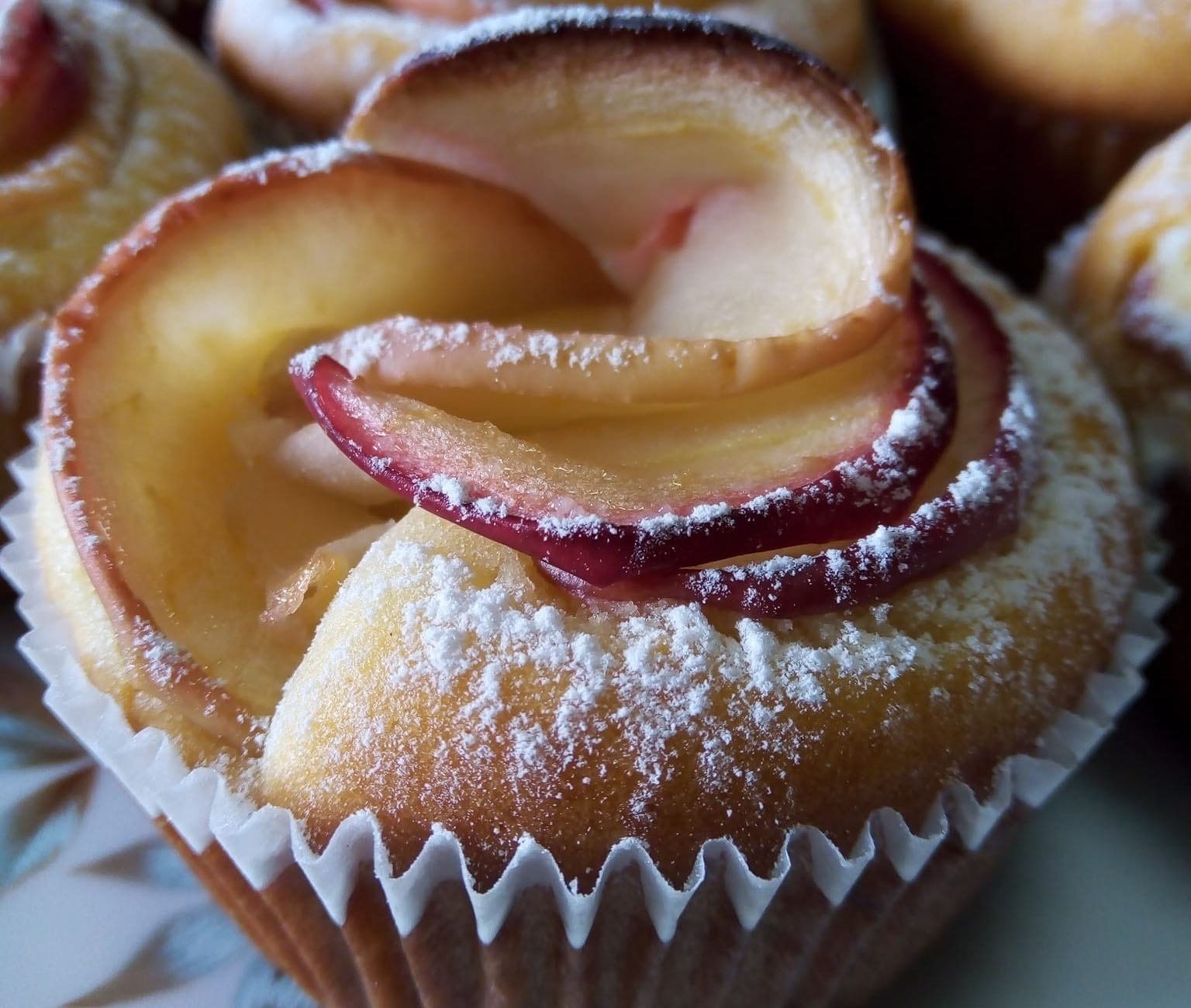 Unite all’impasto i 2\3 terzi delle mele e distribuiteli uniformemente. Inserite i pirottini all’interno degli stampi da muffin. Riempitene i 3\4 con l’impasto. Sulla superficie aggiungete i pezzettini di mela che avete tenuto da parte. Fate un po’ di pressione in modo di legarli bene. Cuocete in forno a 170 gradi per 25 minuti. Appena pronti, lasciateli raffreddare un po’. Rimuoveteli dallo stampo, trasferiteli sul piatto di portata e spolverizzateli con lo zucchero a velo. I vostri muffin alle mele sono pronti.