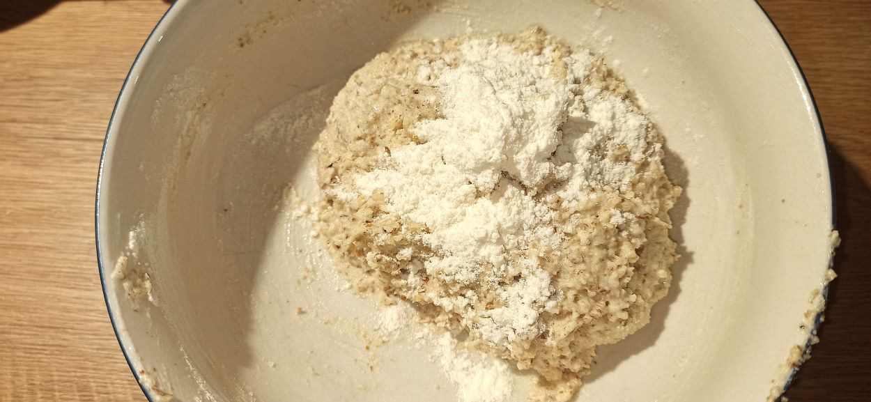 Montateli con l’aiuto delle fruste, poi aggiungete le noci, mescolate, ed infine la farina.