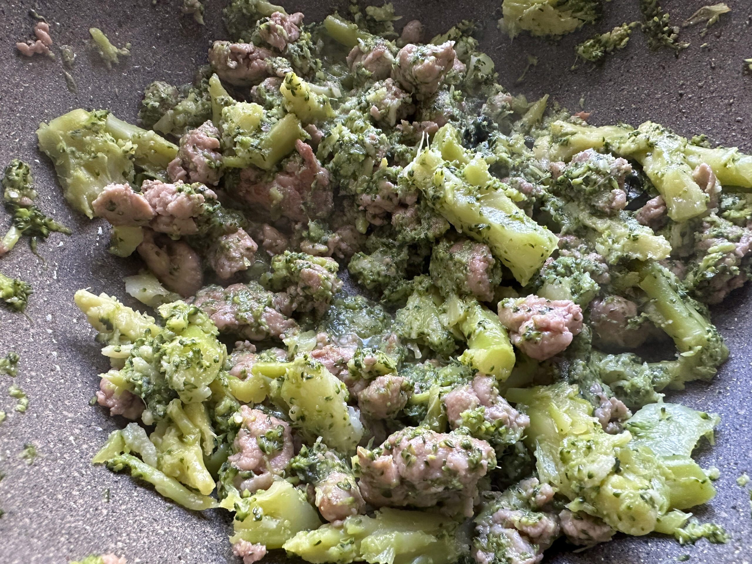 Prendiamo la salsiccia ed eliminiamo il budello, sbricioliamola e facciamola cuocere in una padella ( se avete una Wak รจ meglio) con un filo d’olio. Sfumiamo con un po’ di vino ( bianco o rosso sarร la stessa cosa, in questo caso). Alziamo la fiamma e poi facciamo evaporare tutto l’alcool. Una volta evaporato possiamo abbassare la fiamma e far sudare un po’ la salsiccia. Una volta cotta spegniamo. I broccoli dovranno cuocere un po’ di tempo: li vogliamo belli morbidi, come se il gambo dovesse “spappolarsi”. Li faremo cuocere circa 15 minuti. Una volta cotti, come vedete in foto, unite entrambi nella padella e coprite.