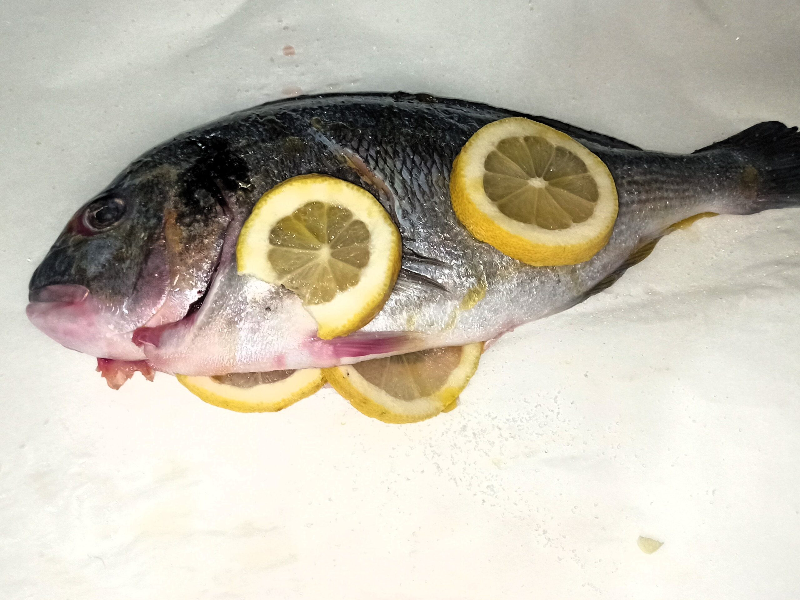 Per preparare l’orata del cavaliere, iniziate a squamare ed eviscerare l’orata, per questa operazione potete delegare il vostro pescivendolo di fiducia. Posizionate su una teglia un foglio di carta forno, sopra posizionate l’orata, internamente inserite il prezzemolo, lo spicchio d’aglio tagliato in quattro, qualche fettina di limone e un pizzico di sale. Ungete leggermente la superficie dell’orata, poi mettete ancora un poco di sale e qualche fettina di limone.